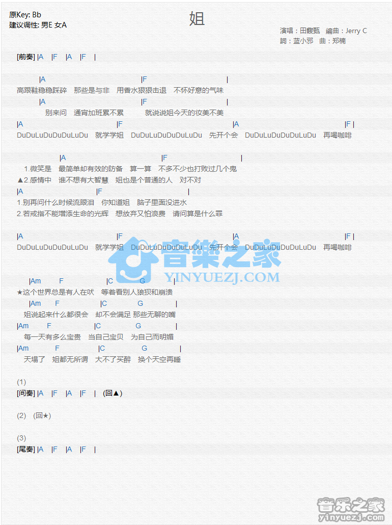 田馥甄《姐》吉他谱_吉他弹唱谱
