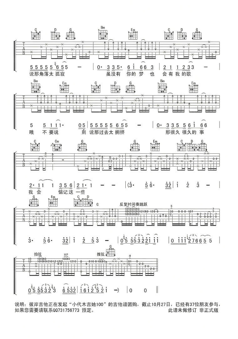 木吉她小代《惦记这一些》吉他谱_吉他弹唱谱_彼岸吉他编配