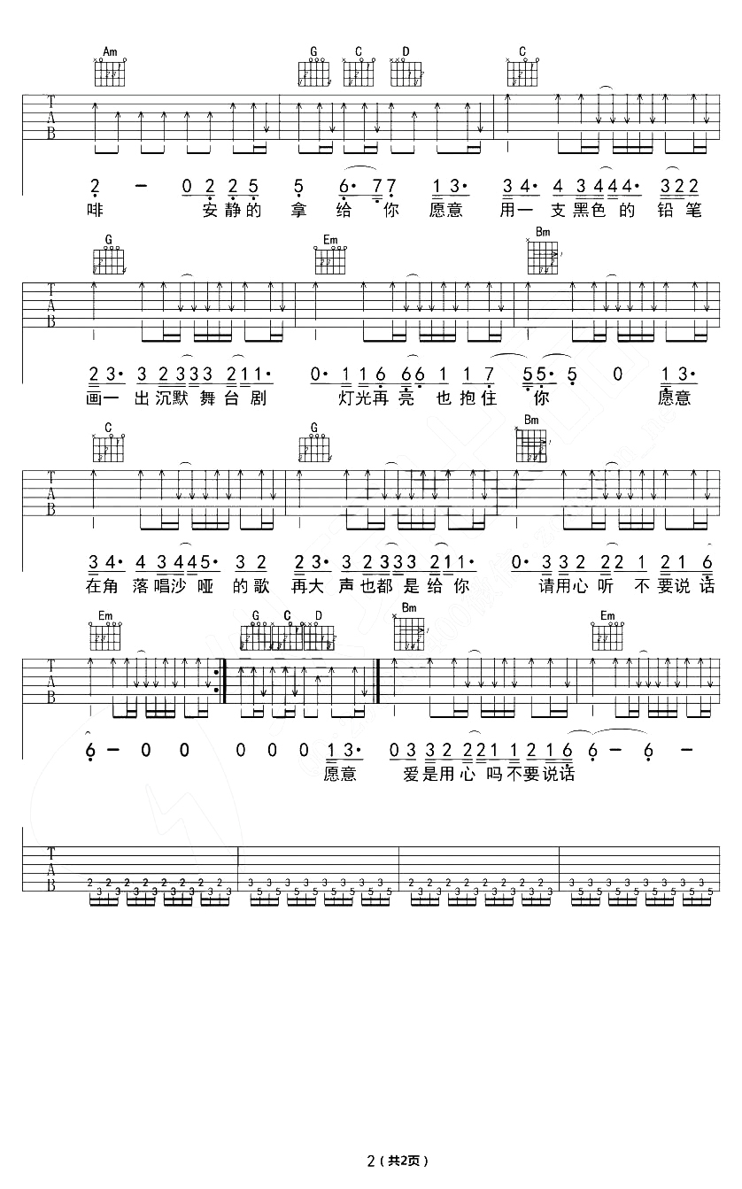 陈奕迅《不要说话》吉他谱_吉他弹唱谱_纵玩吉他猫哥编配