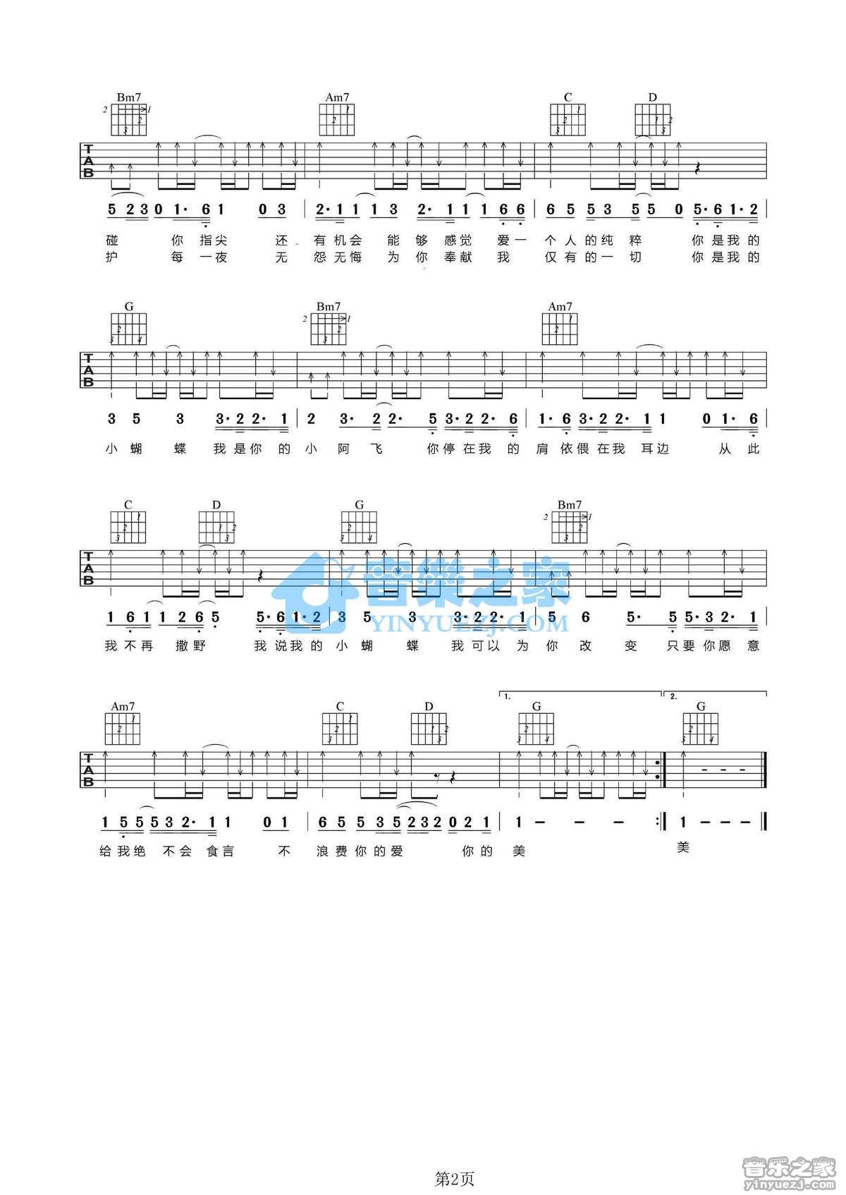 G调版萧敬腾《阿飞的小蝴蝶》吉他弹唱六线谱
