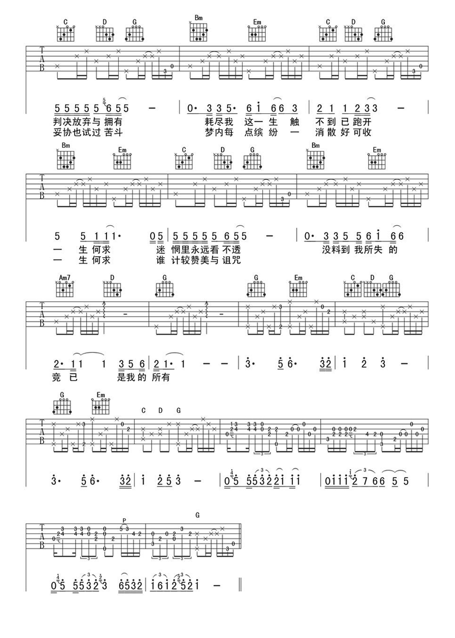 陈百强一生何求吉他谱,G调和弦指法编配,一生何求六线谱,高清图片谱。一个时代的音乐骄子,香港情歌王子陈百强英年早逝,他留给我们的那些拨动心弦的旋律,无论冷暖都不曾停休,只是转回头去时已匆匆多年。岁月带不走的,是那些无尽的伤感与声声叹息,这首《一生何求》深情忧伤,是粤语流行歌曲经典音乐作品。