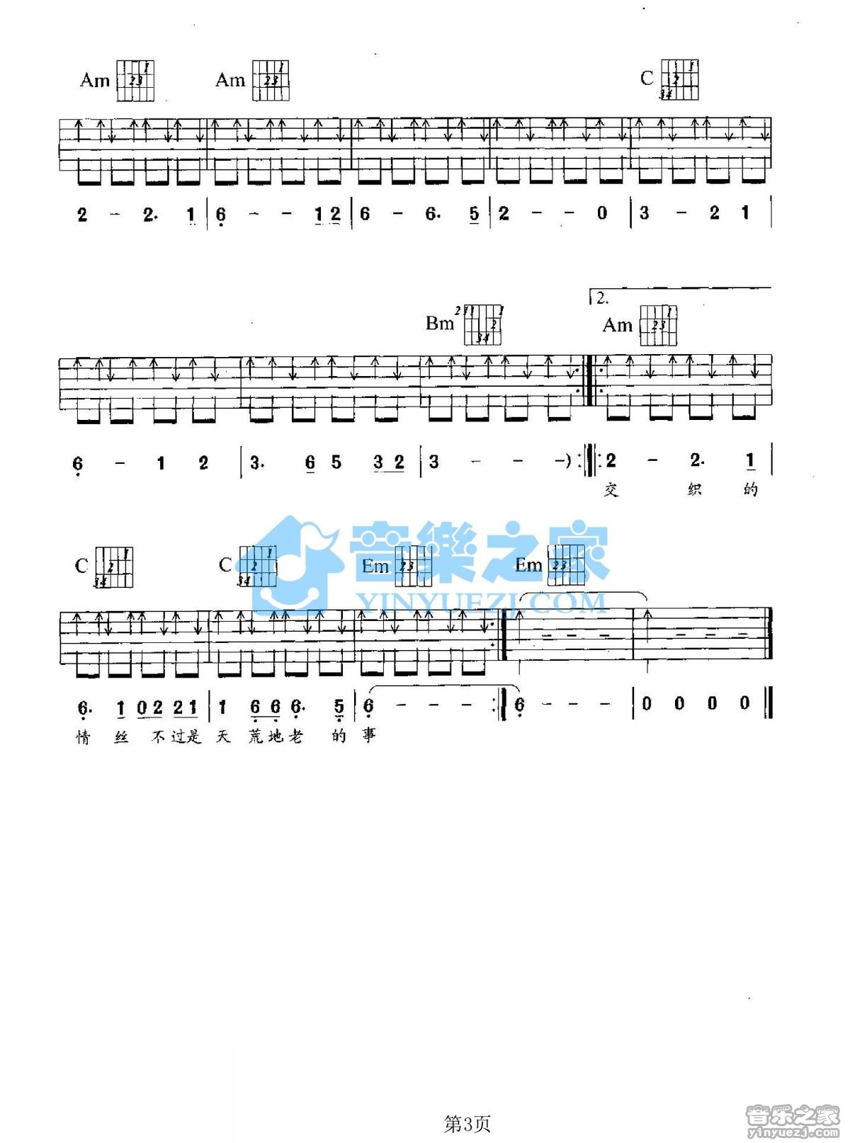 - 罗大佑《天若有情》吉他谱_吉他弹唱谱_YYZJ编配