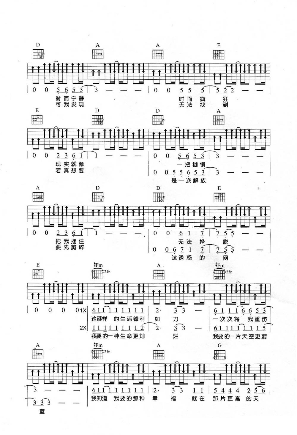 - 汪峰《怒放的生命》吉他谱_吉他弹唱谱_刘传风华编配