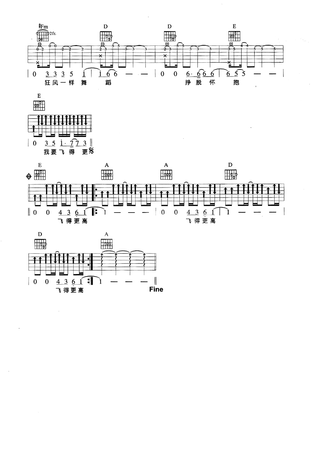 汪峰《飞得更高》吉他谱_吉他弹唱谱_YYZJ卢家宏编配