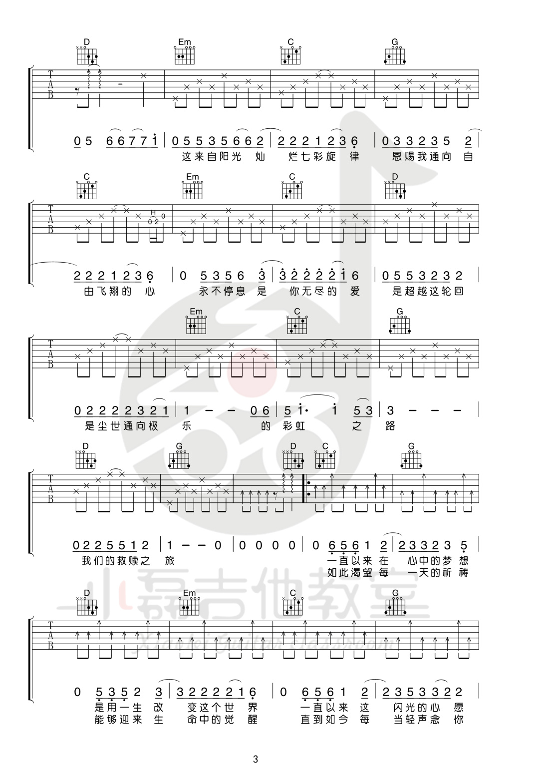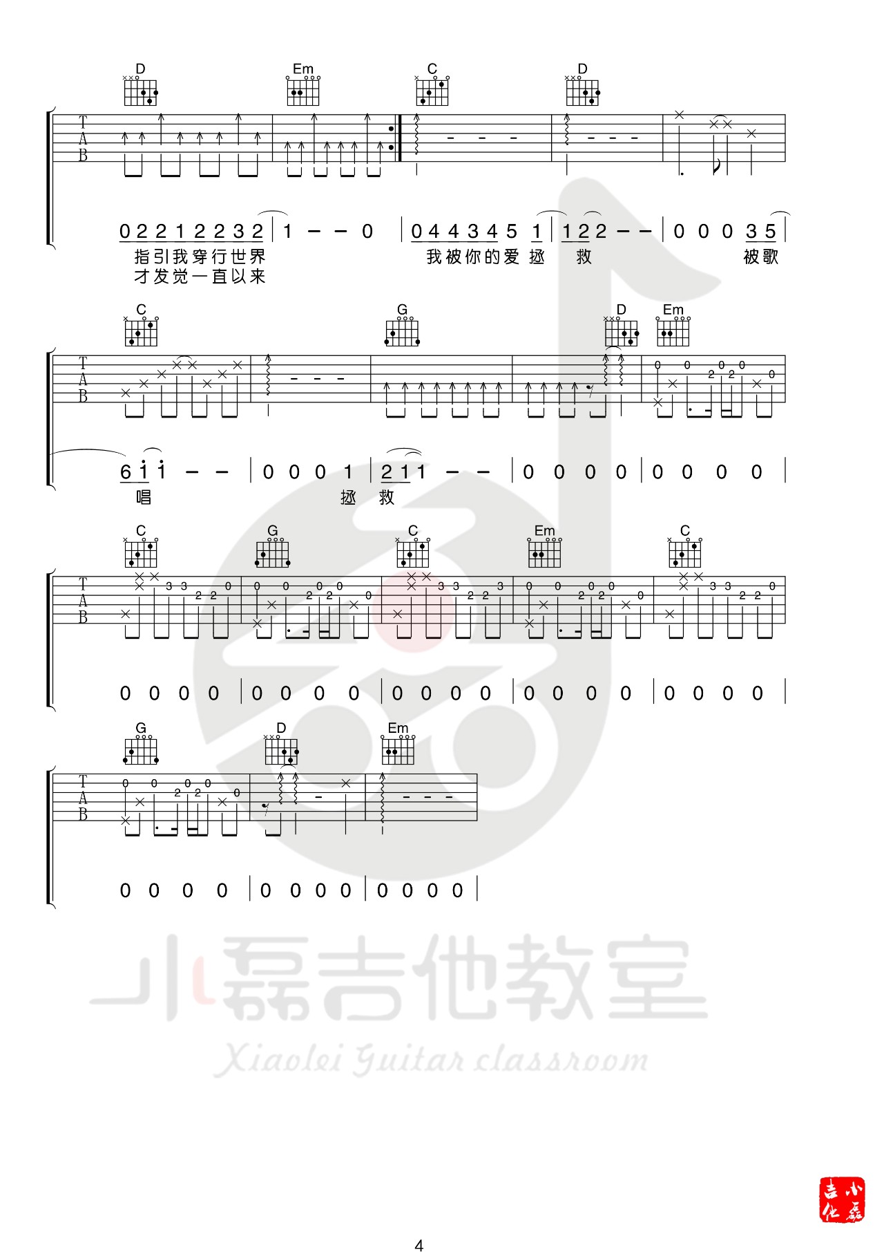 许巍《救赎之旅》吉他谱_吉他弹唱谱_小磊吉他编配