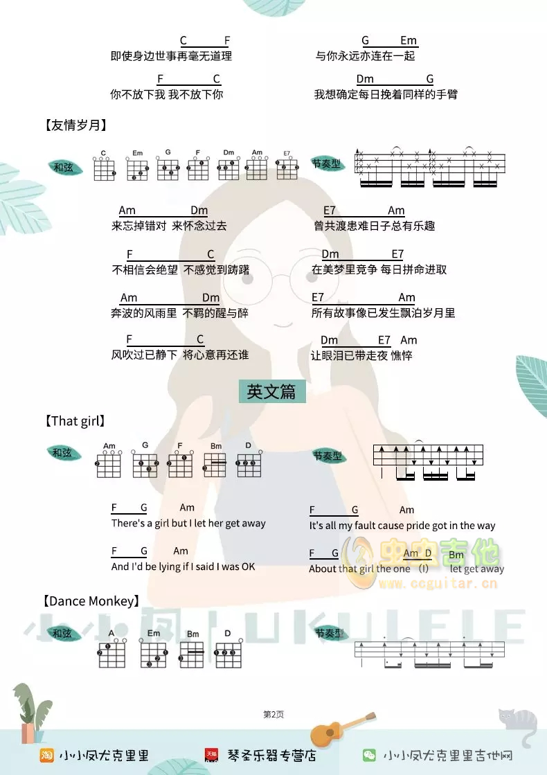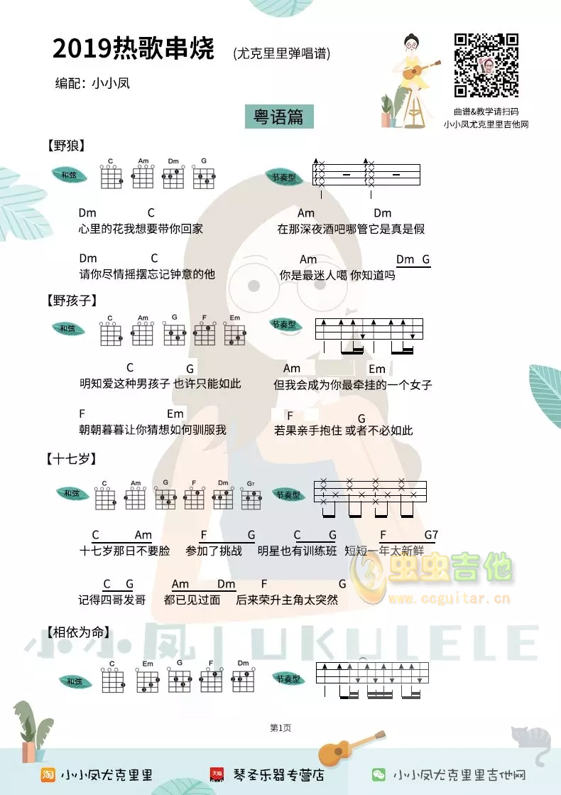 20首热歌串烧你听过几首?尤克里里弹唱谱四线谱ukulele小小凤