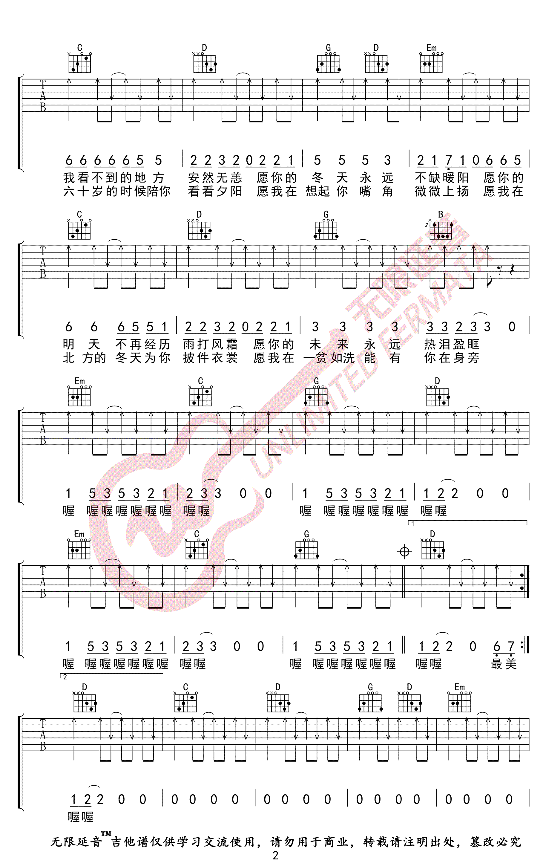 ,原调A调,变调夹夹第二品,选用G调指法。三张图片谱高清版,无限延音编配出品