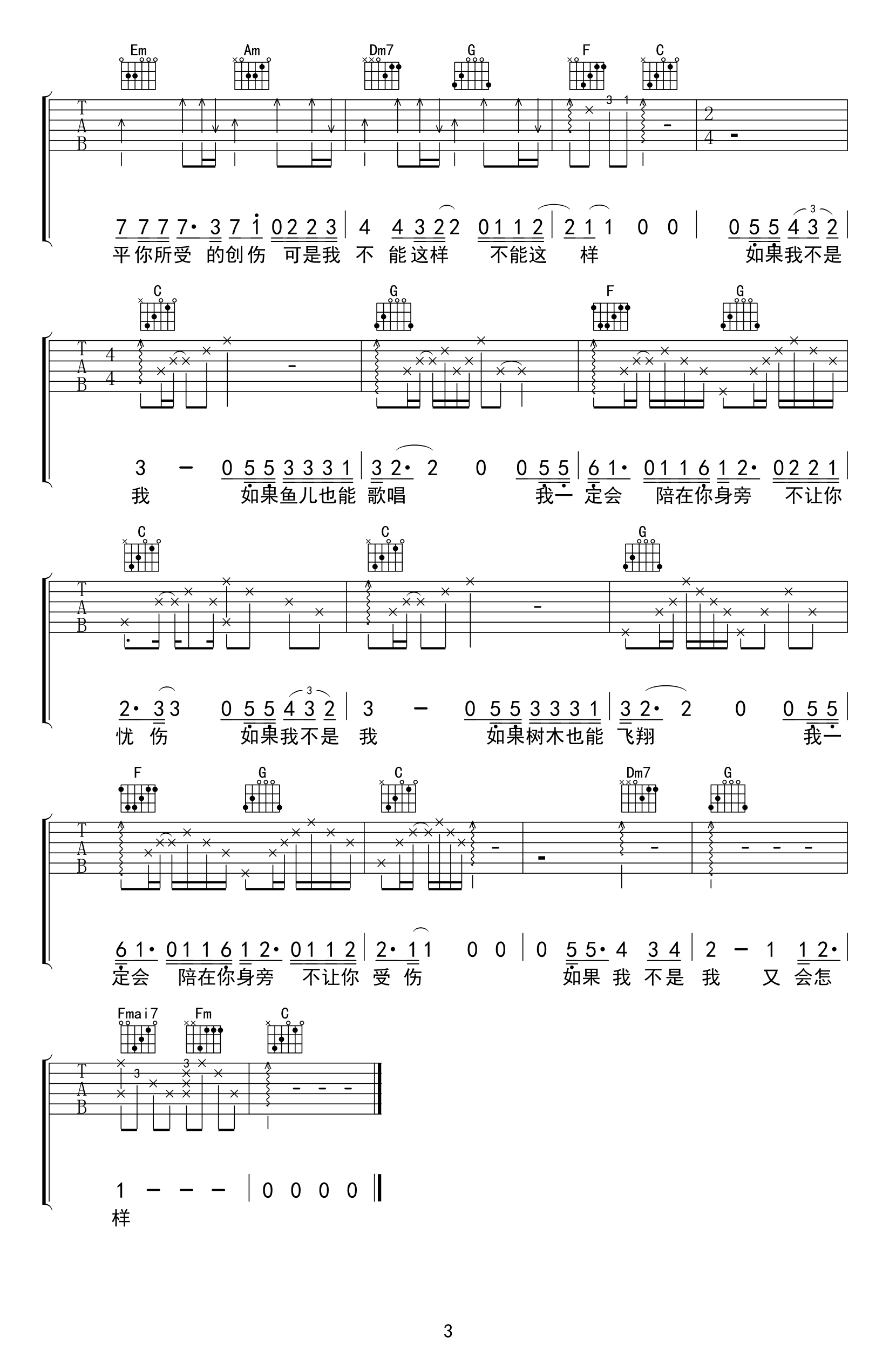 如果我不是我吉他谱_吴昱翰_C调男生版