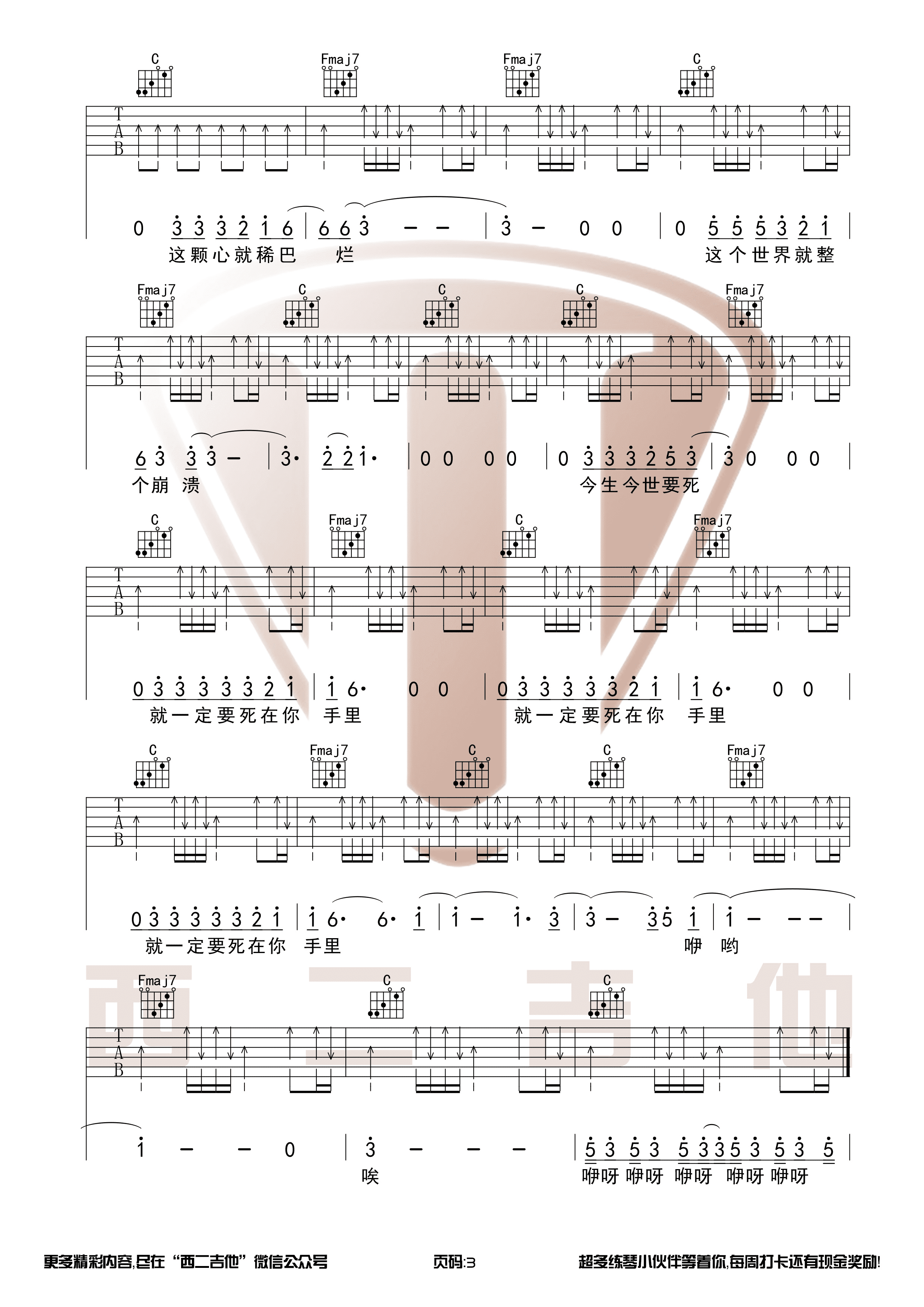 莫西子诗 - 要死就一定要死在你手里 吉他谱