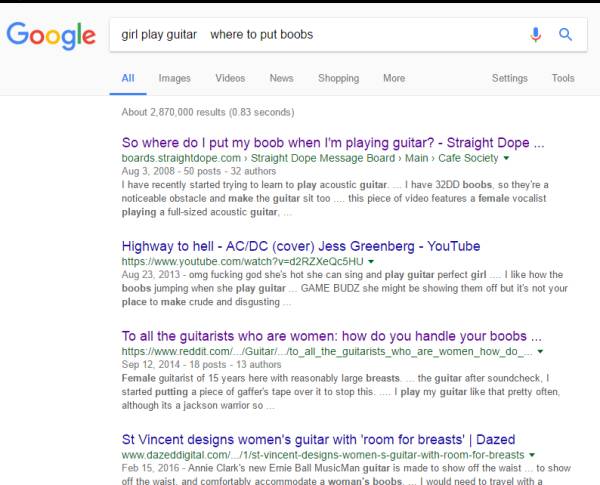 这个问题肯定是存在很久了,因为阿姨谷歌了一下,发现搜索结果高达两百八十多万条。在各大吉他论坛和网站里面,有胸部的女孩在关注这个问题,没有胸部的男孩,也来满足好奇心。