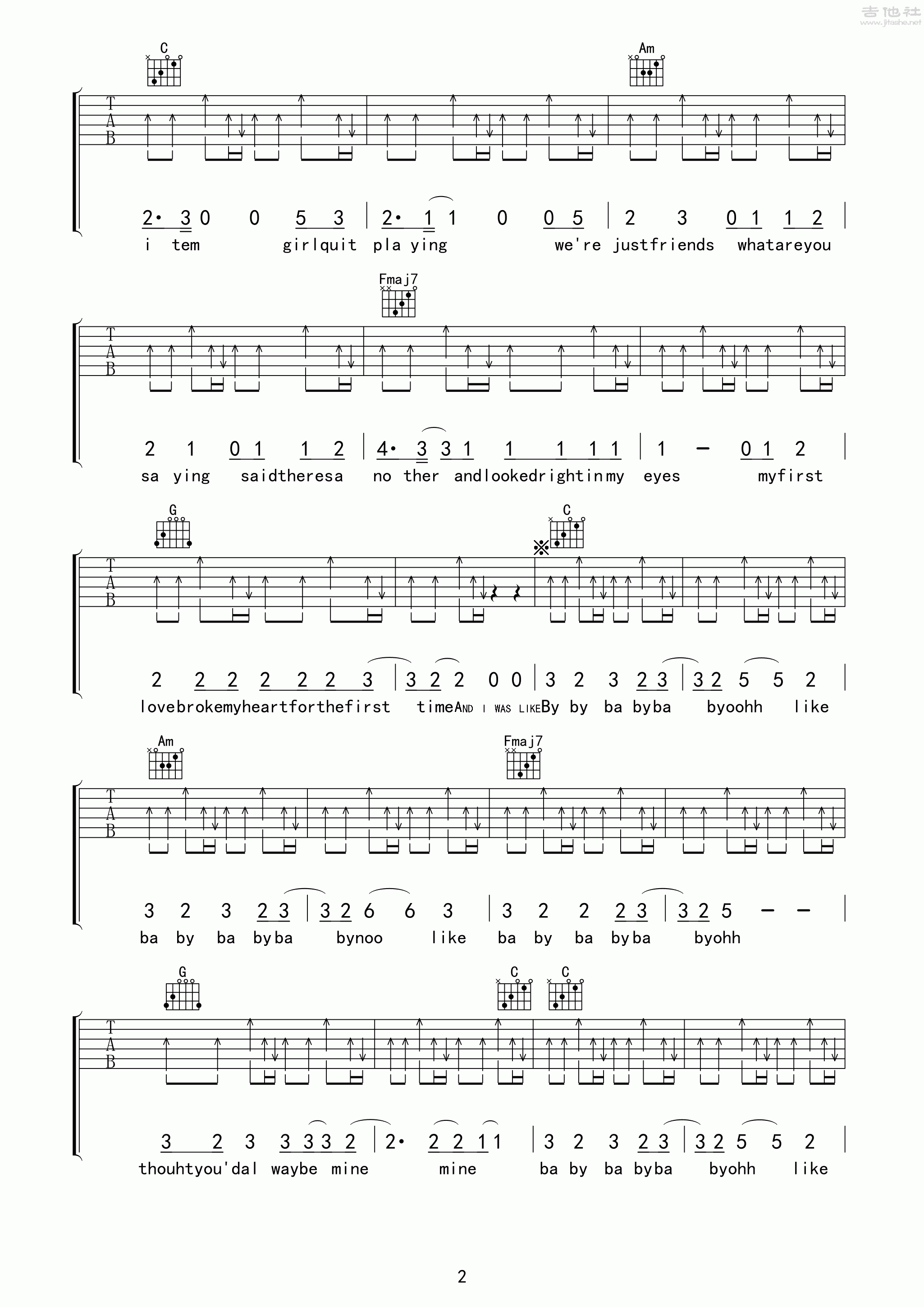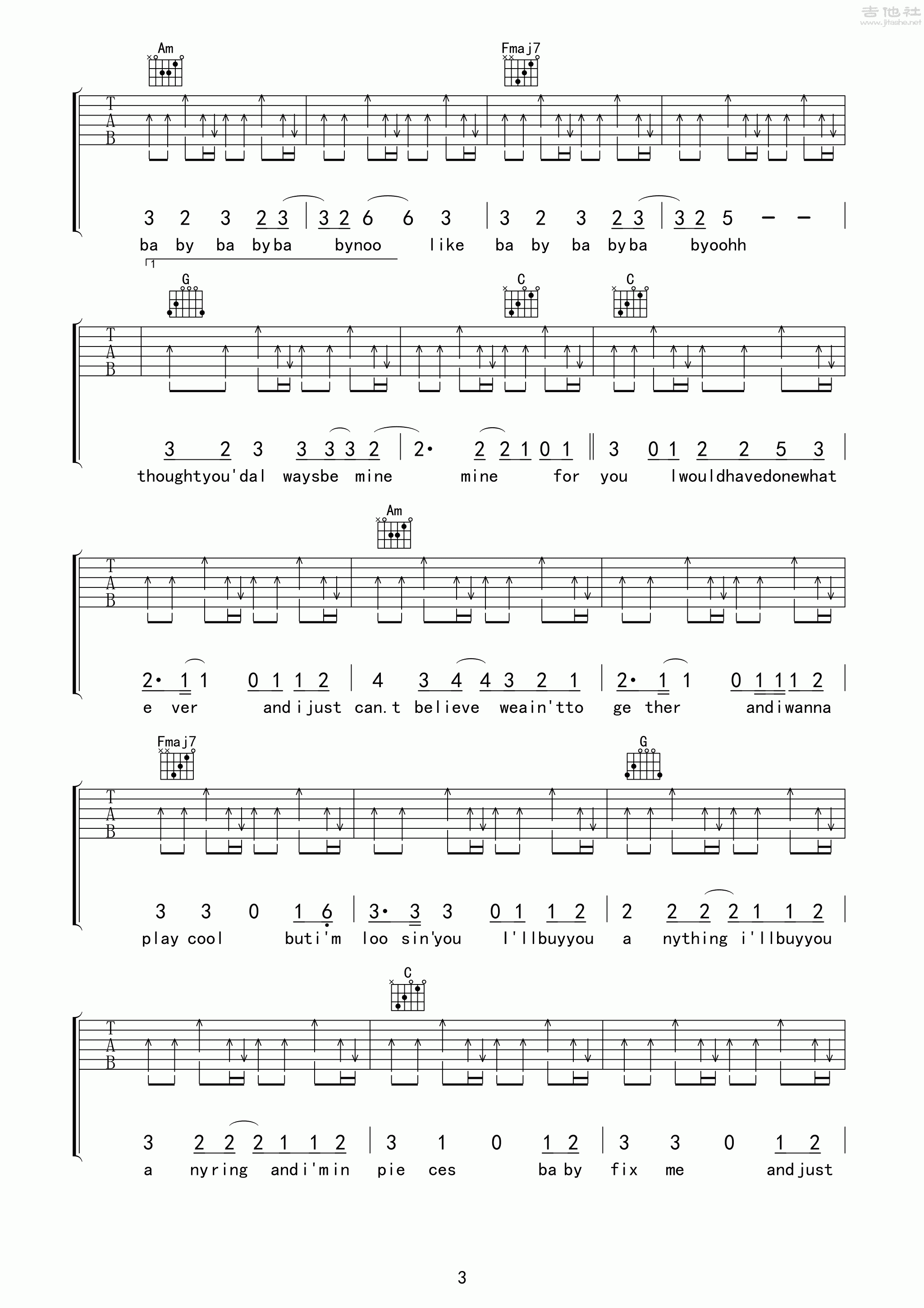 Justin Bieber - Baby [弹唱 扫弦] 吉他谱