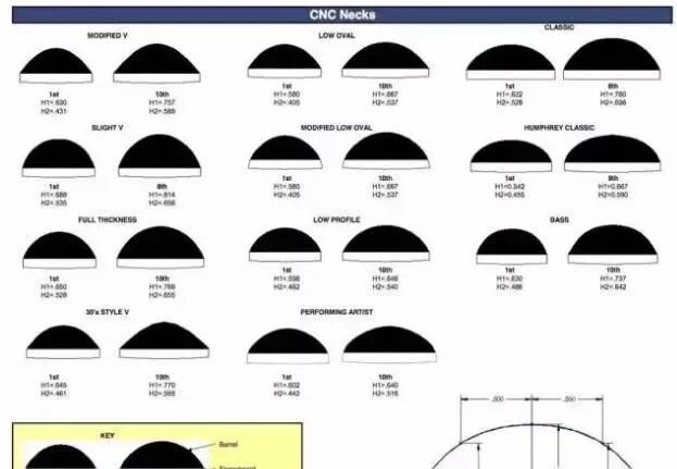 其实原本我们常说的琴颈形状如C型、V型、U型都是Fender最初定义的,而在其后的吉他发展演变当中,这三种类型也成为了各个品牌吉他主要采用的类型依据,当然也有个别不同的琴颈类型。