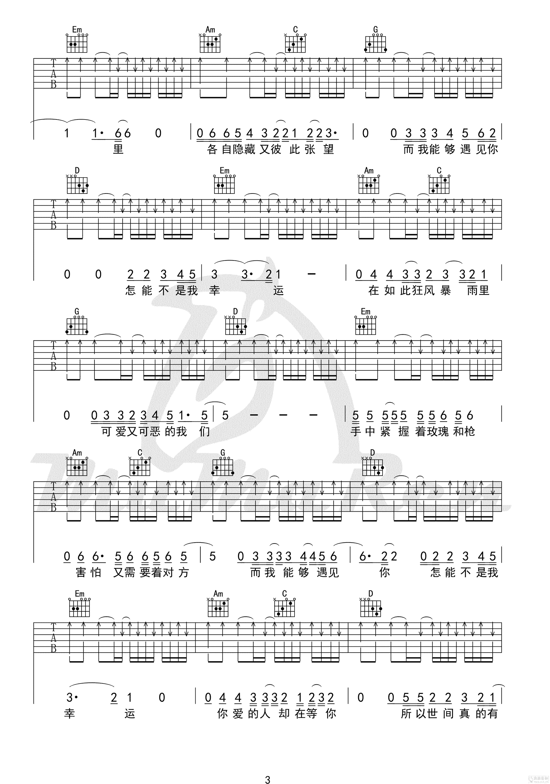 - 印度歌曲《来吧吉米》吉他谱_吉他弹唱谱_YYZJ编配