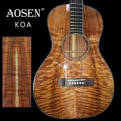 夏威夷相思木(Koa),音色的丰富程度介于桃花芯和玫瑰木之间,纹理相当漂亮高档的一种木材,和巴西玫瑰木一样禁止砍伐,极其难得。