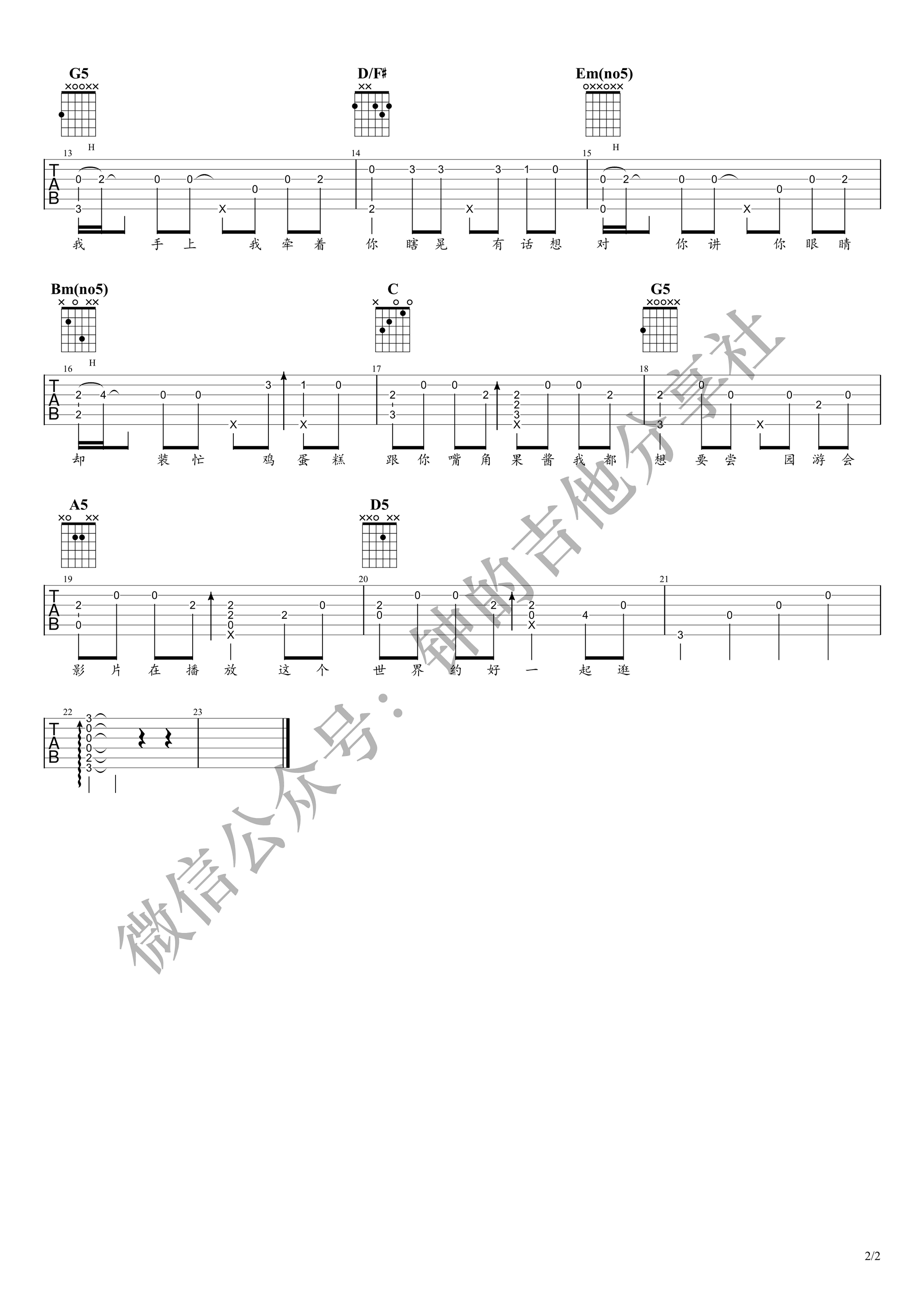 B调歌曲,变调夹加4品,G调指法编配,园游会吉他独奏谱,只做了副歌部分,钟的吉他分享社编配分享
