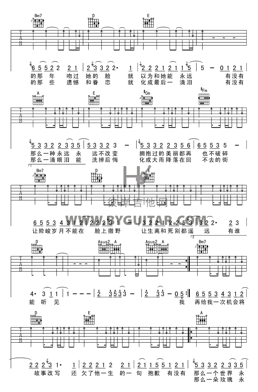 - 王大文《酸雨》吉他谱_吉他弹唱谱_YYZJ编配