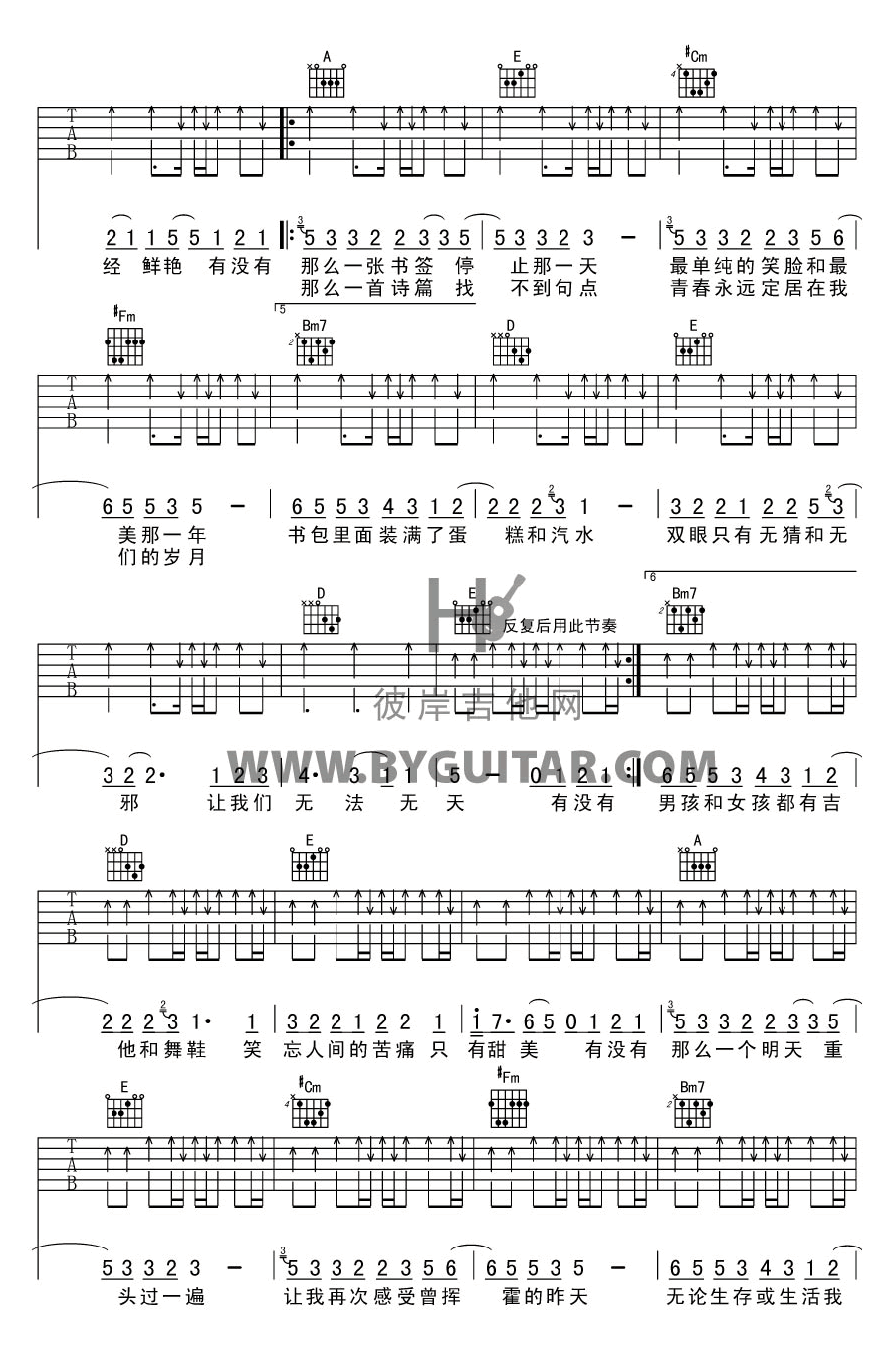 如烟吉他谱_五月天_《如烟》A调弹唱六线谱