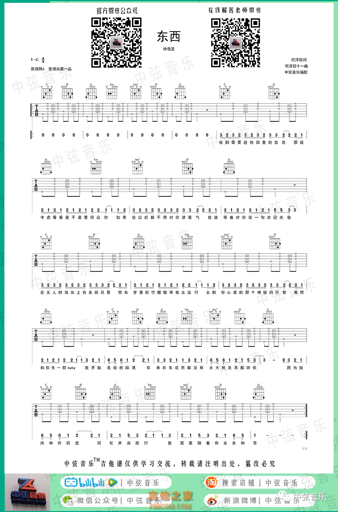 《东西》吉他谱林俊呈-G调弹唱谱