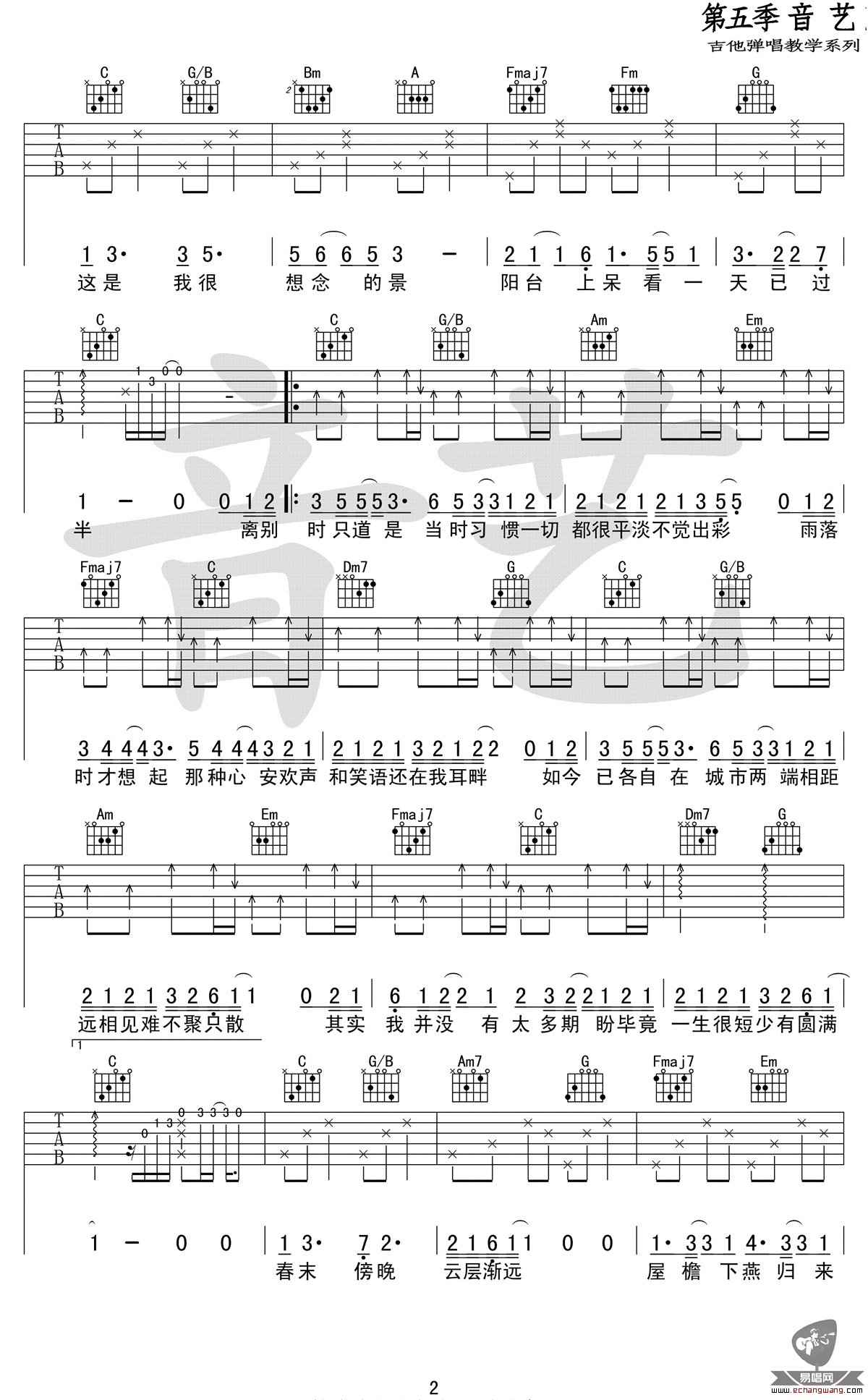 - 王大文《酸雨》吉他谱_吉他弹唱谱_YYZJ编配