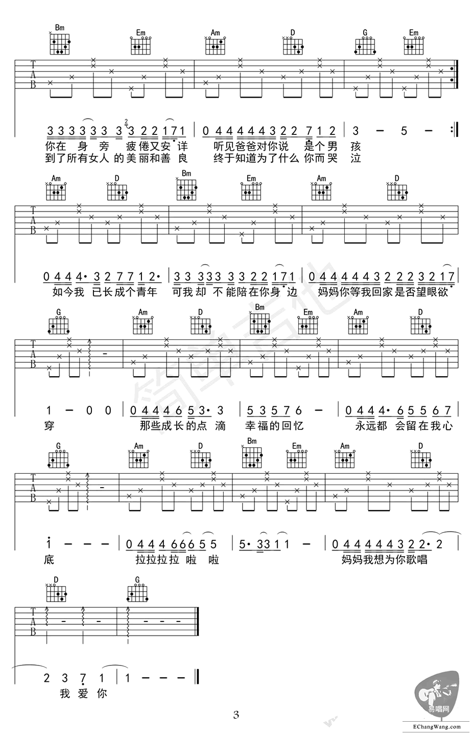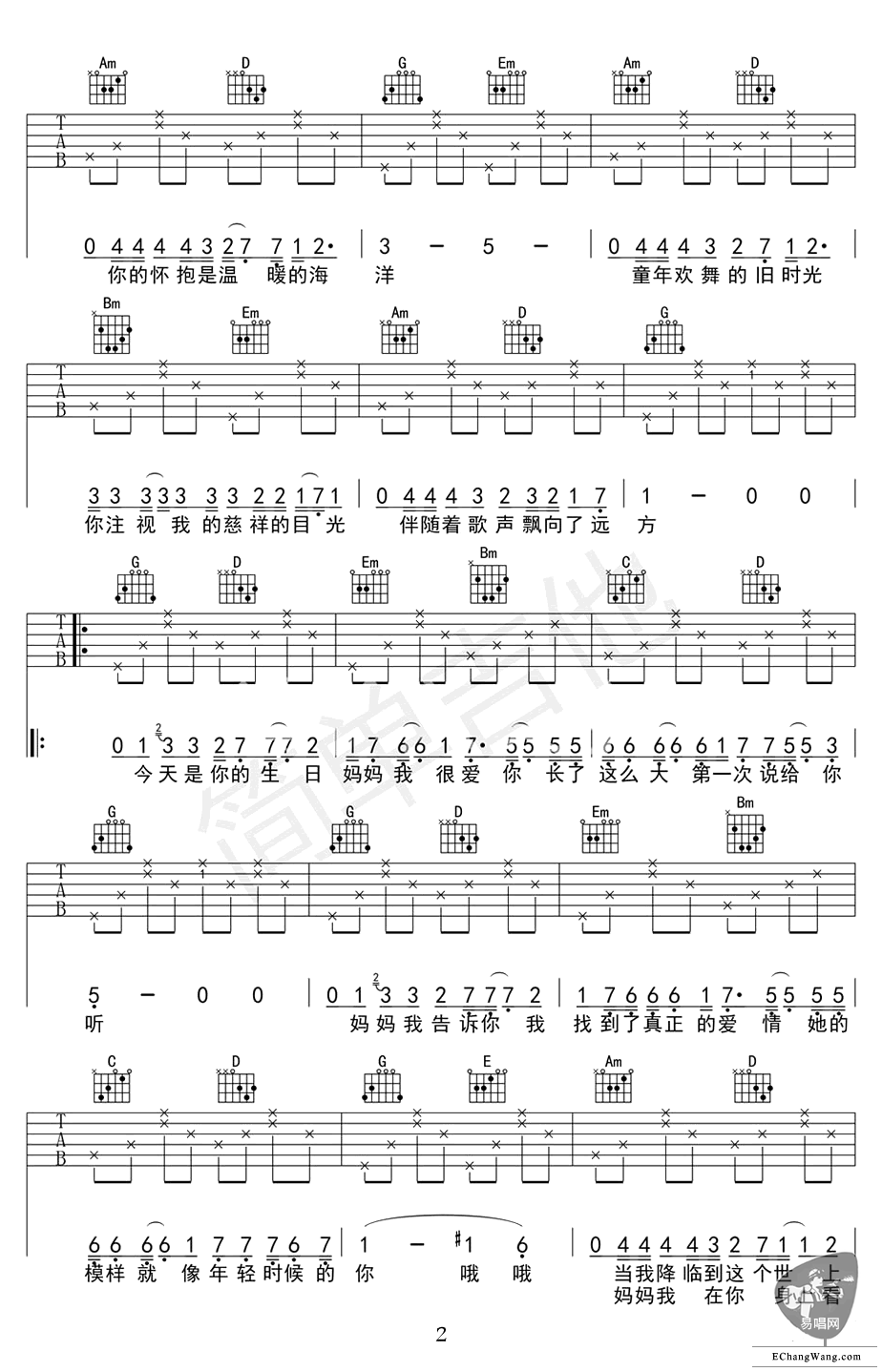 《今天是你的生日妈妈》吉他谱_李健_G调弹唱谱