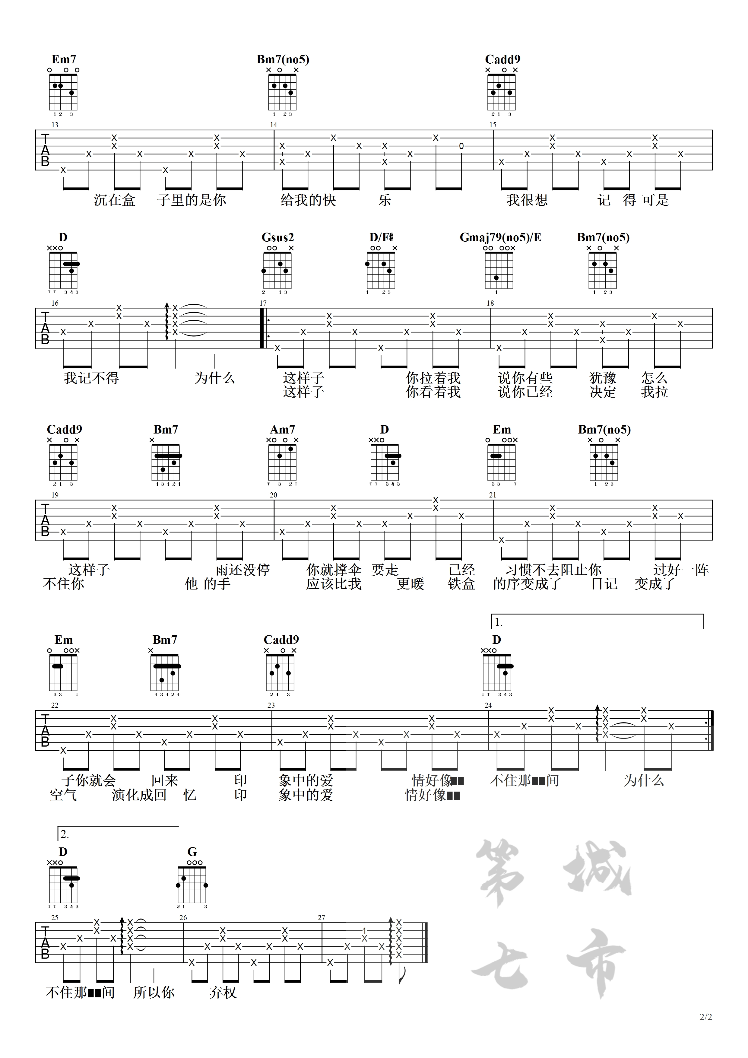 - 陈栢宇《你瞒我瞒》吉他谱_吉他弹唱谱_7t吉他教室编配