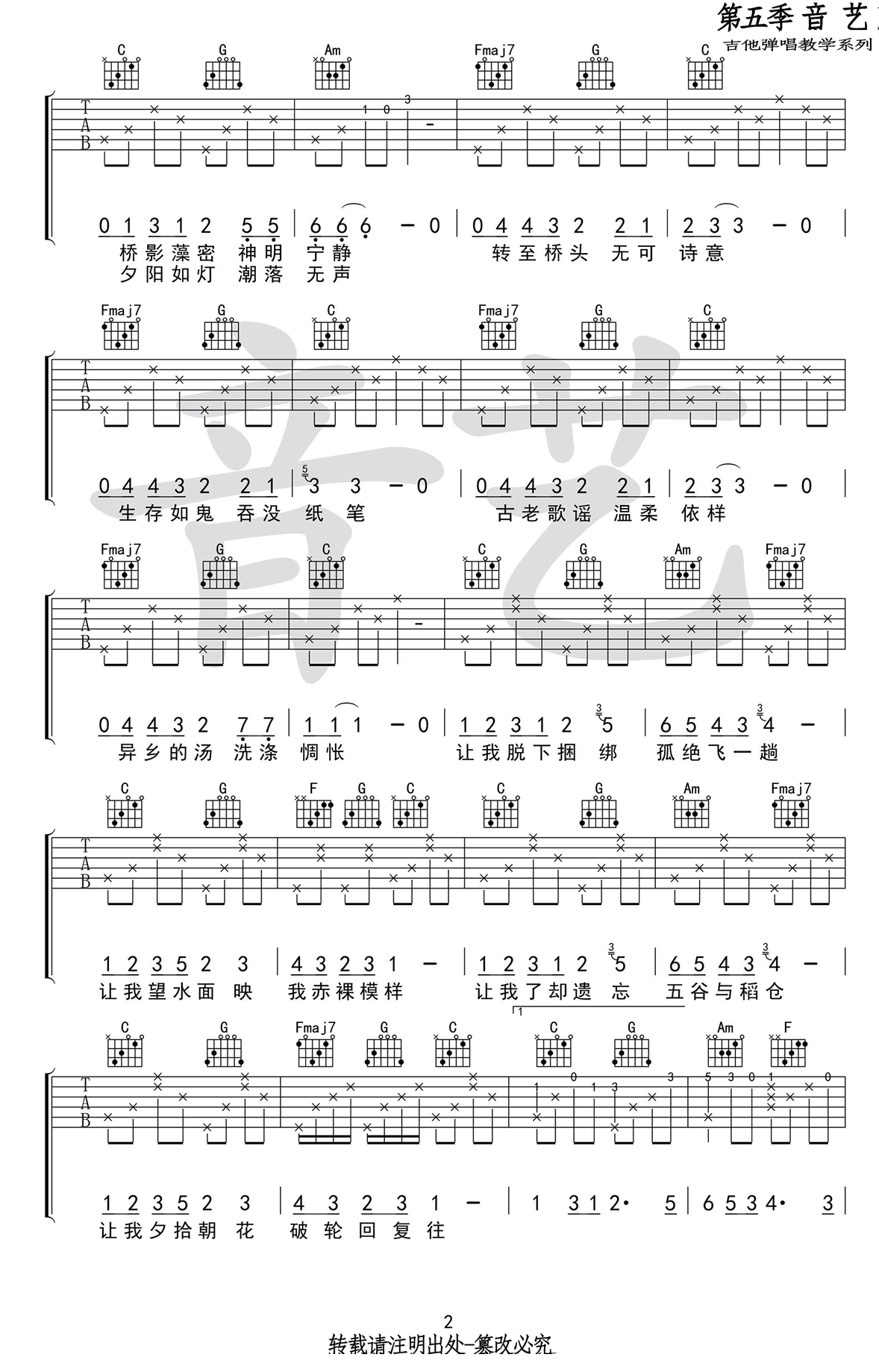 - 崔开潮《声声慢》吉他谱_吉他弹唱谱_小磊老师编配