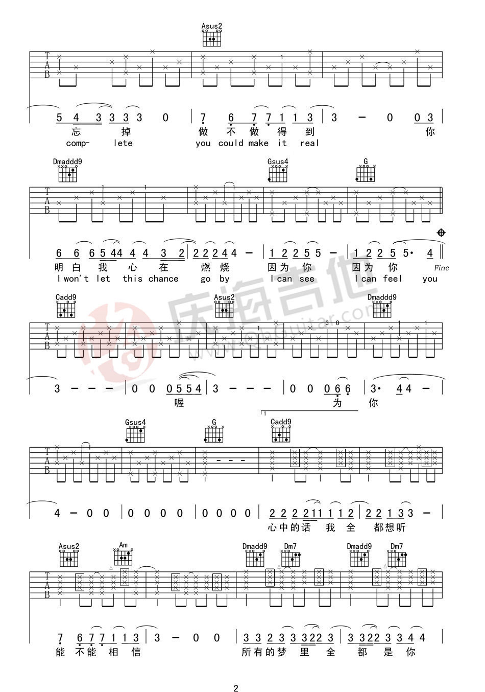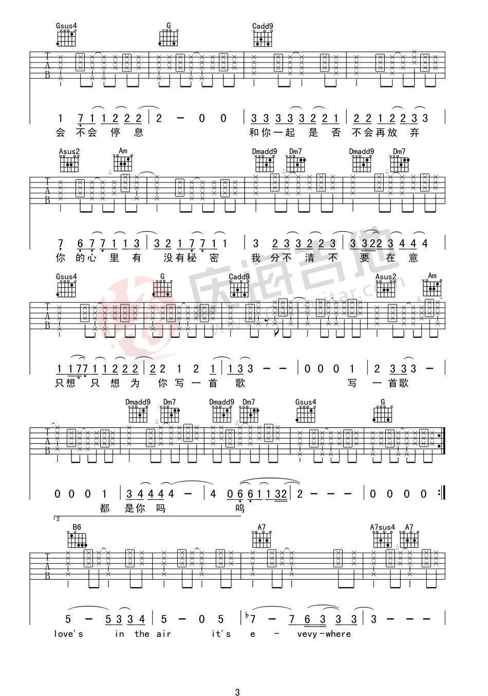 - 陈栢宇《你瞒我瞒》吉他谱_吉他弹唱谱_7t吉他教室编配