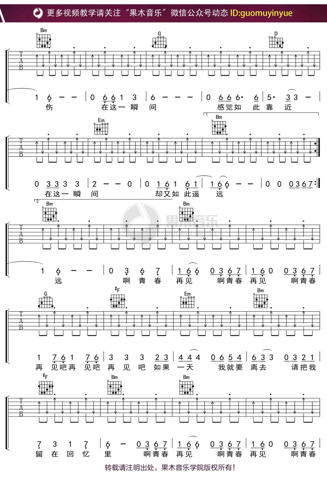 《青春再见》吉他谱_水木年华_D调简单版弹唱谱六线谱