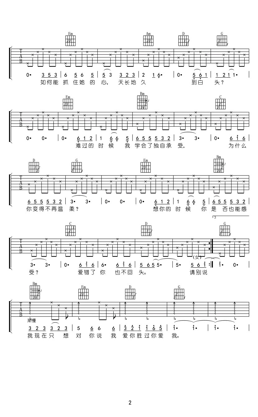 冷漠/杨晓曼《我爱你胜过你爱我》吉他谱-G调弹唱六线谱