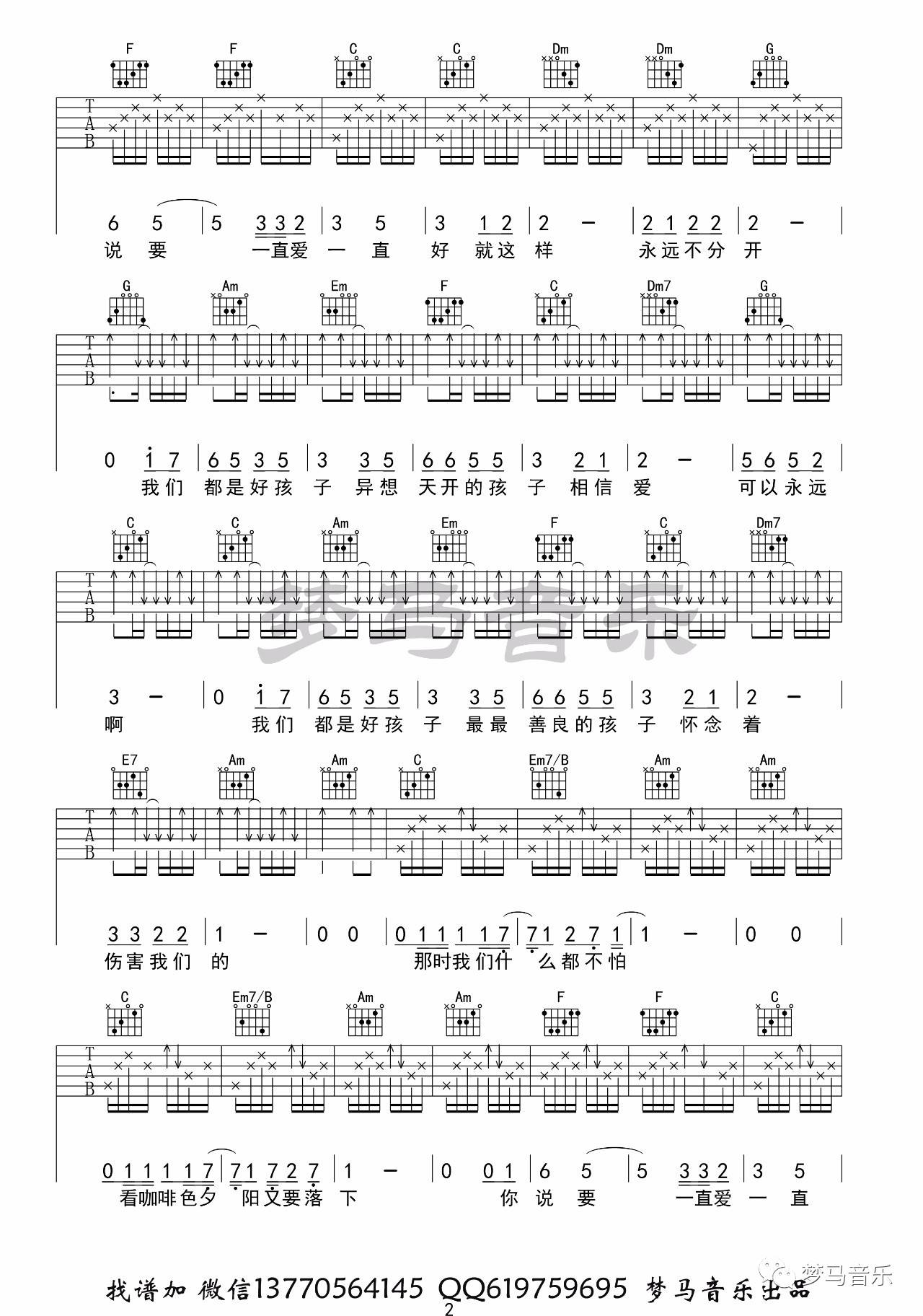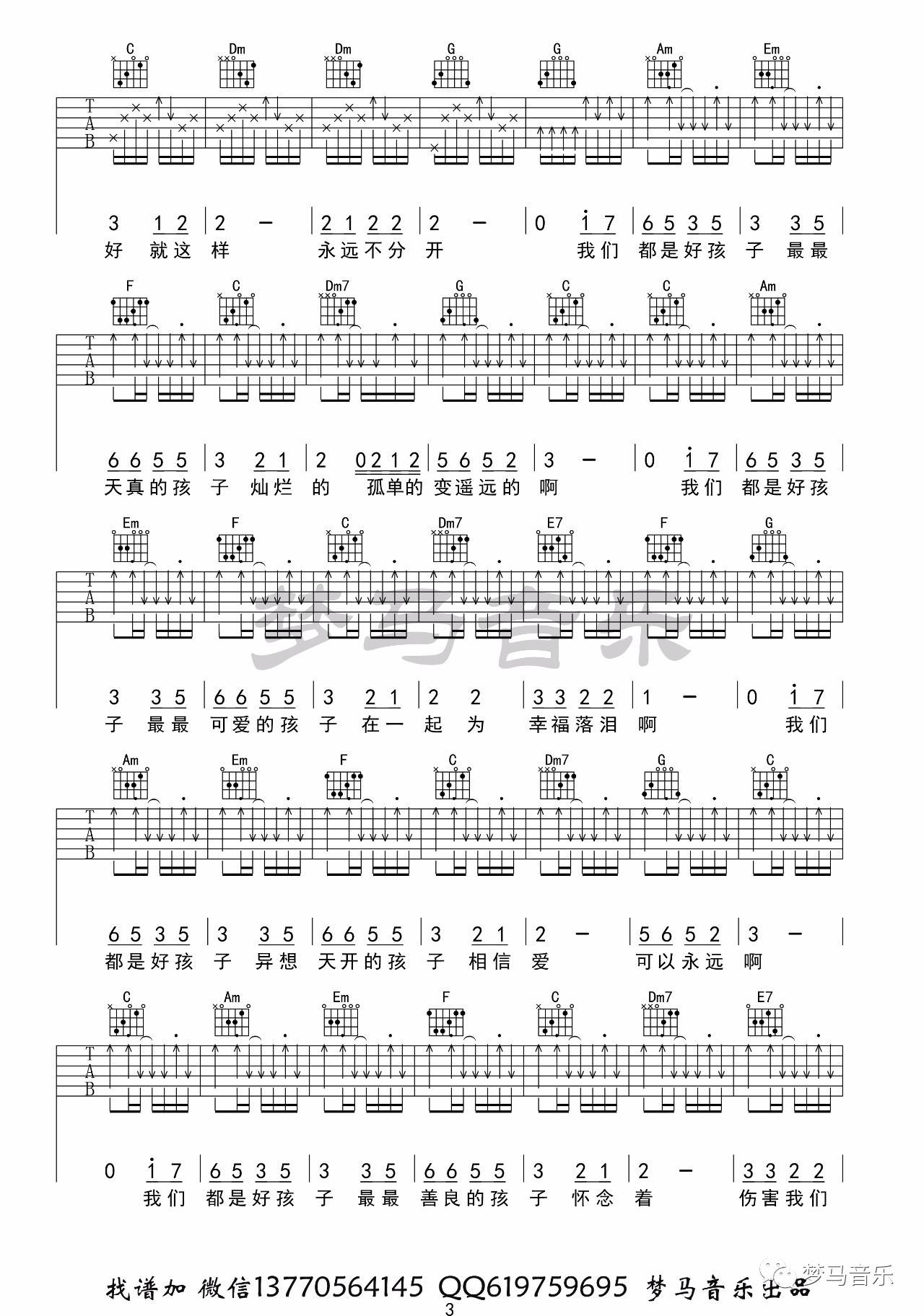王筝《我们都是好孩子》吉他谱-C调弹唱谱六线谱
