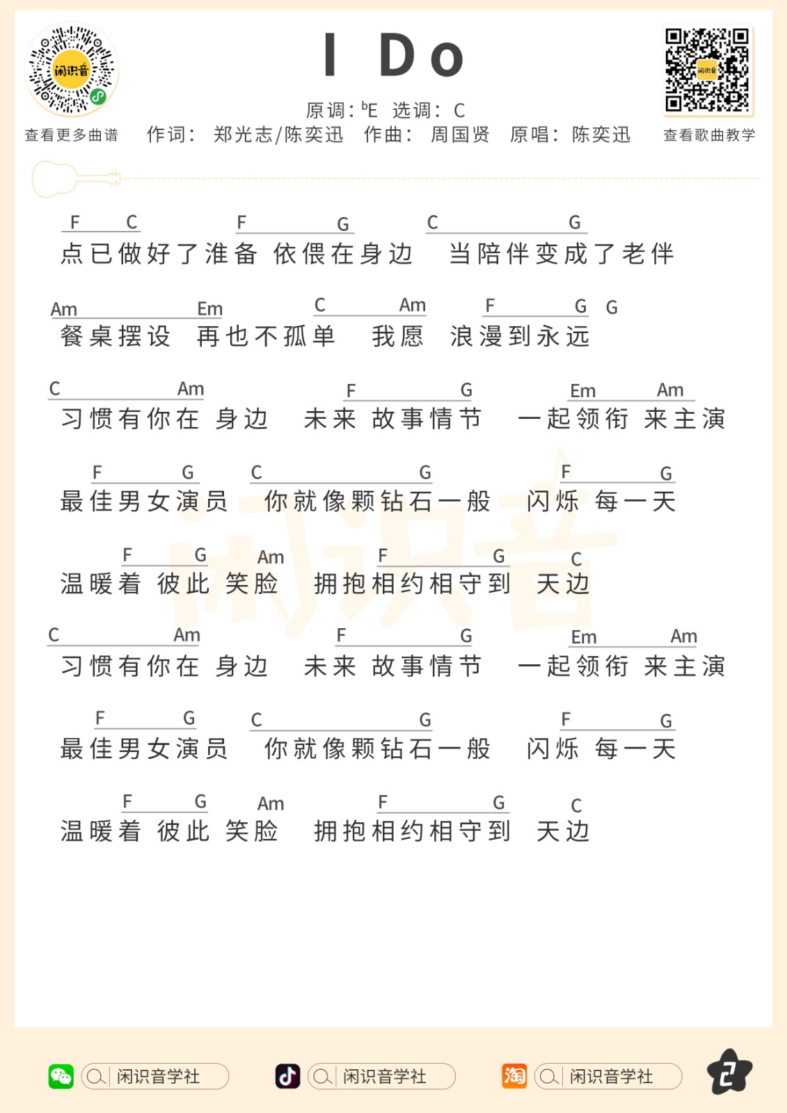 陈奕迅《IDo》尤克里里曲谱-C调弹唱谱