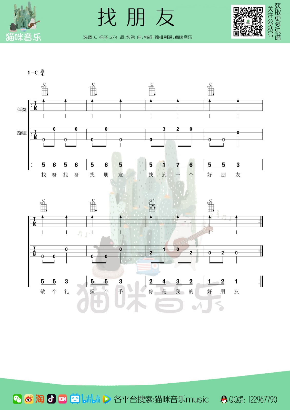 儿歌《找朋友》尤克里里谱-C调完整弹唱