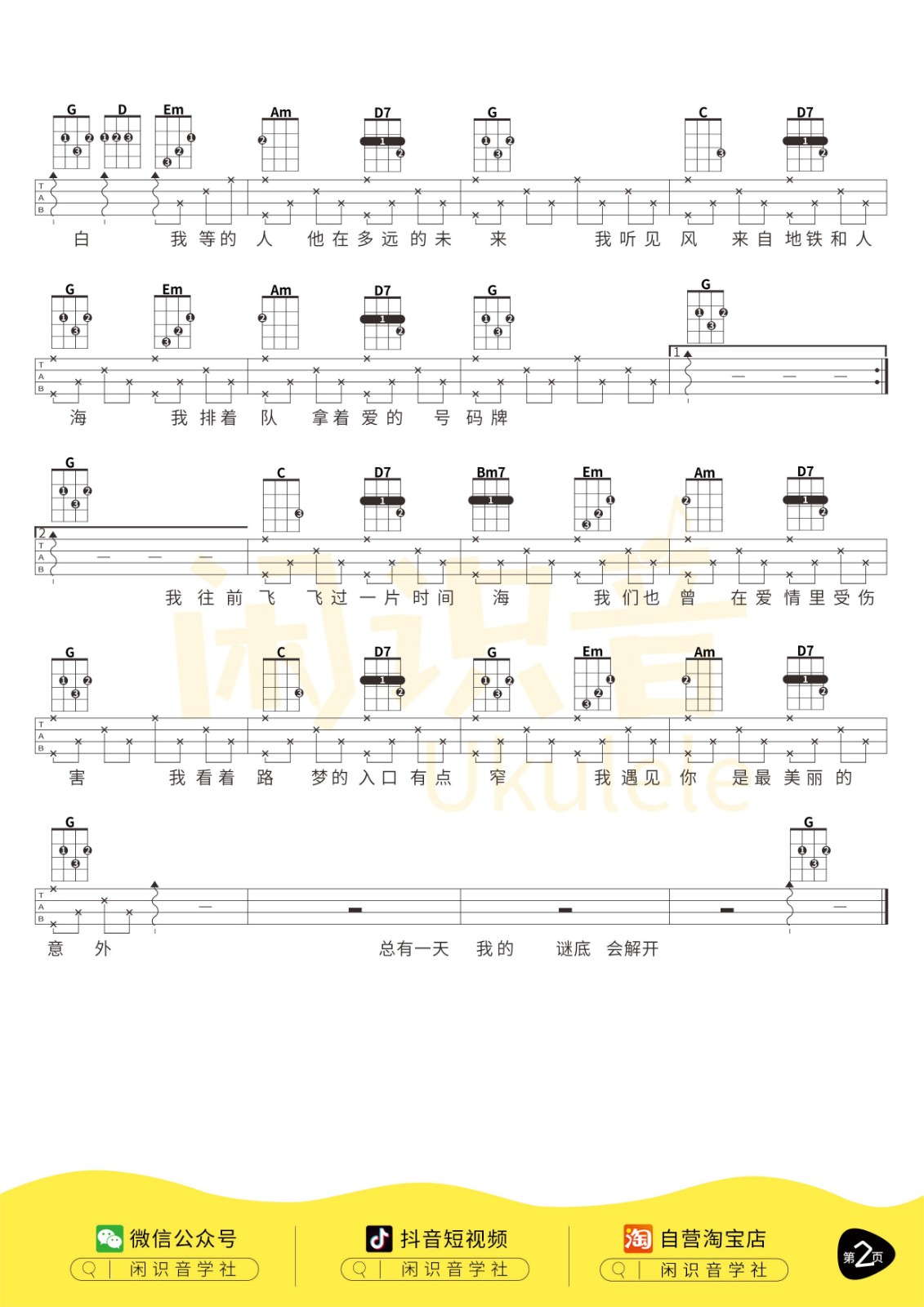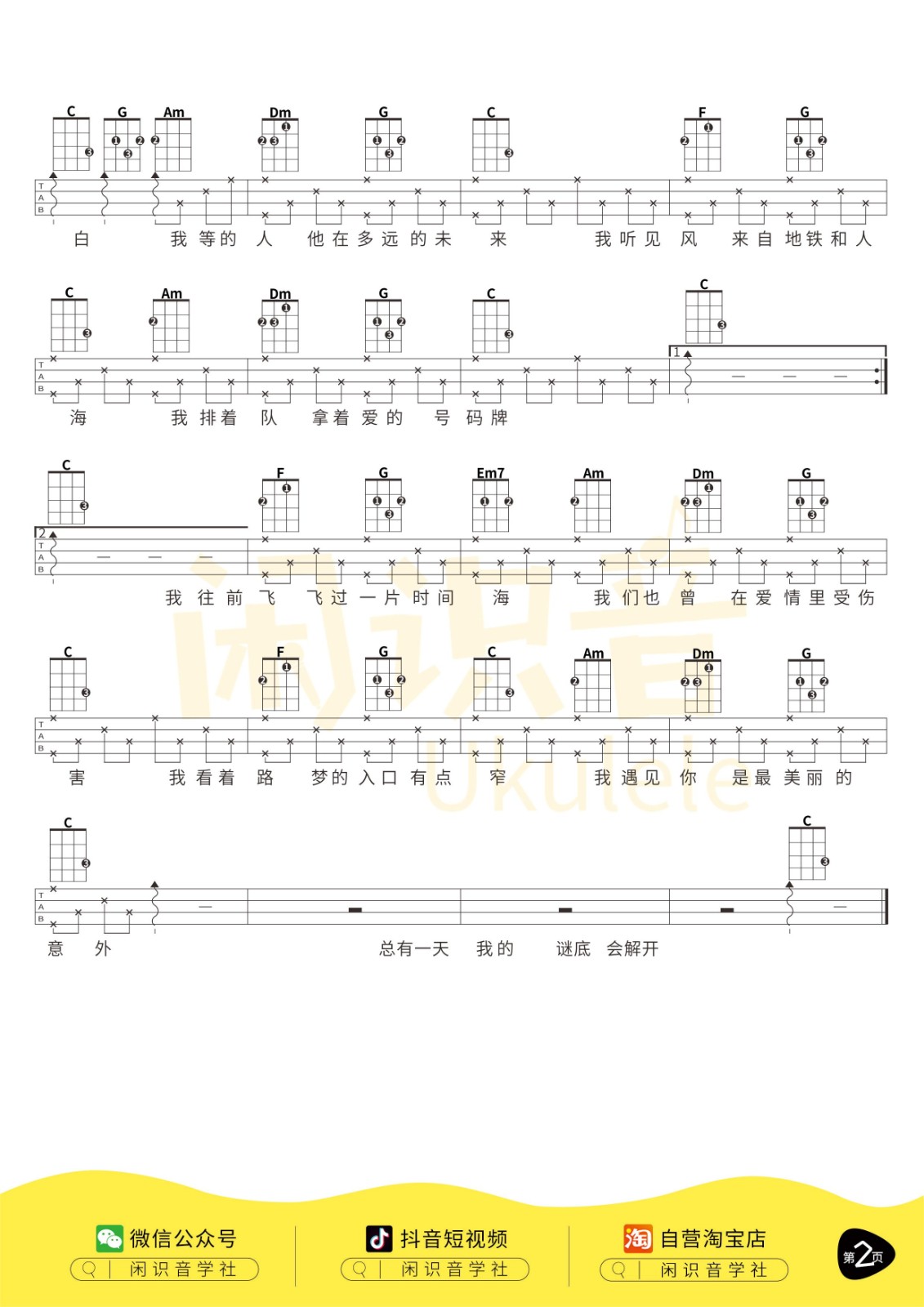孙燕姿《遇见》男生版/女生版尤克里里曲谱完整弹唱