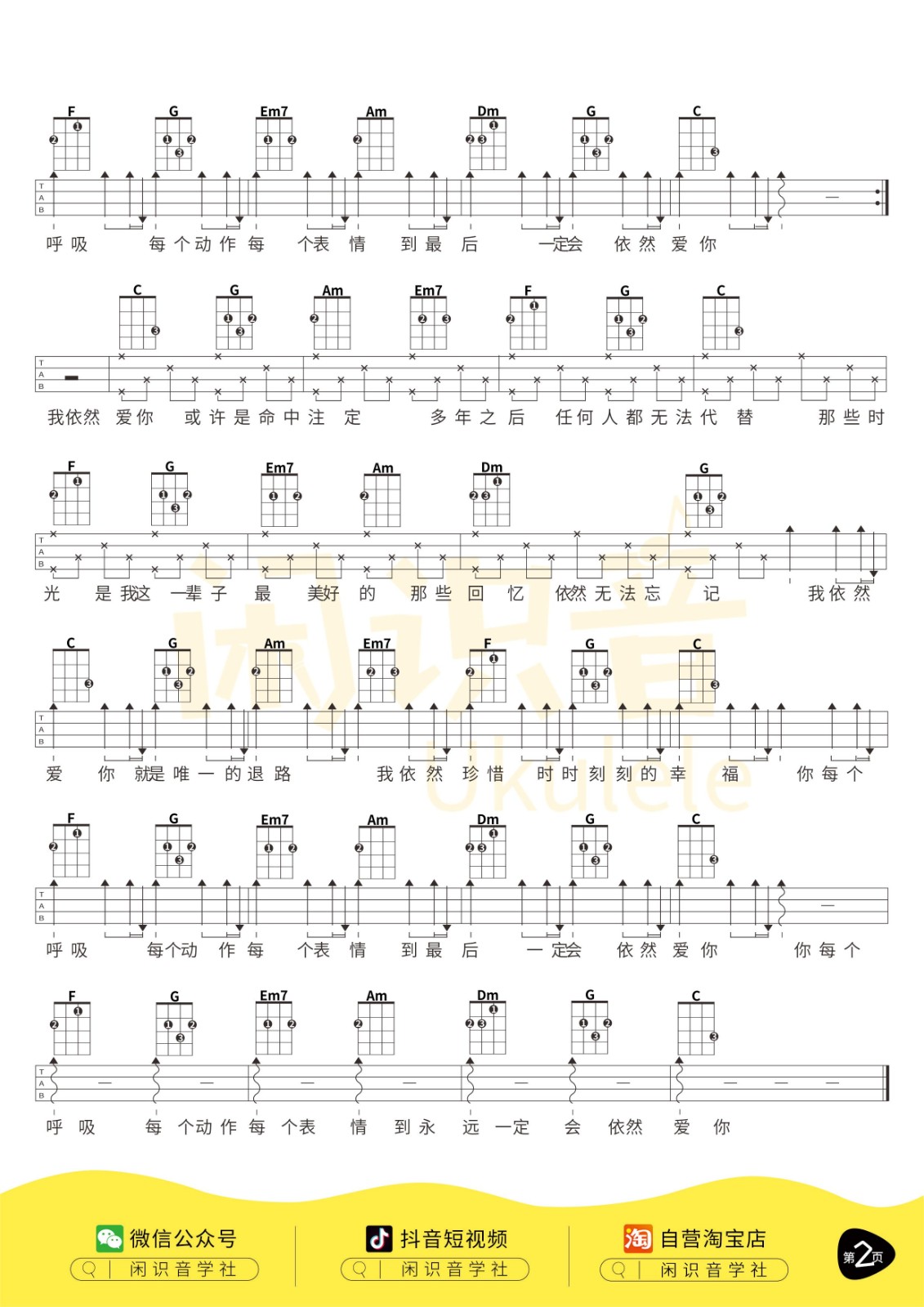 王力宏《依然爱你》尤克里里曲谱-C调完整弹唱