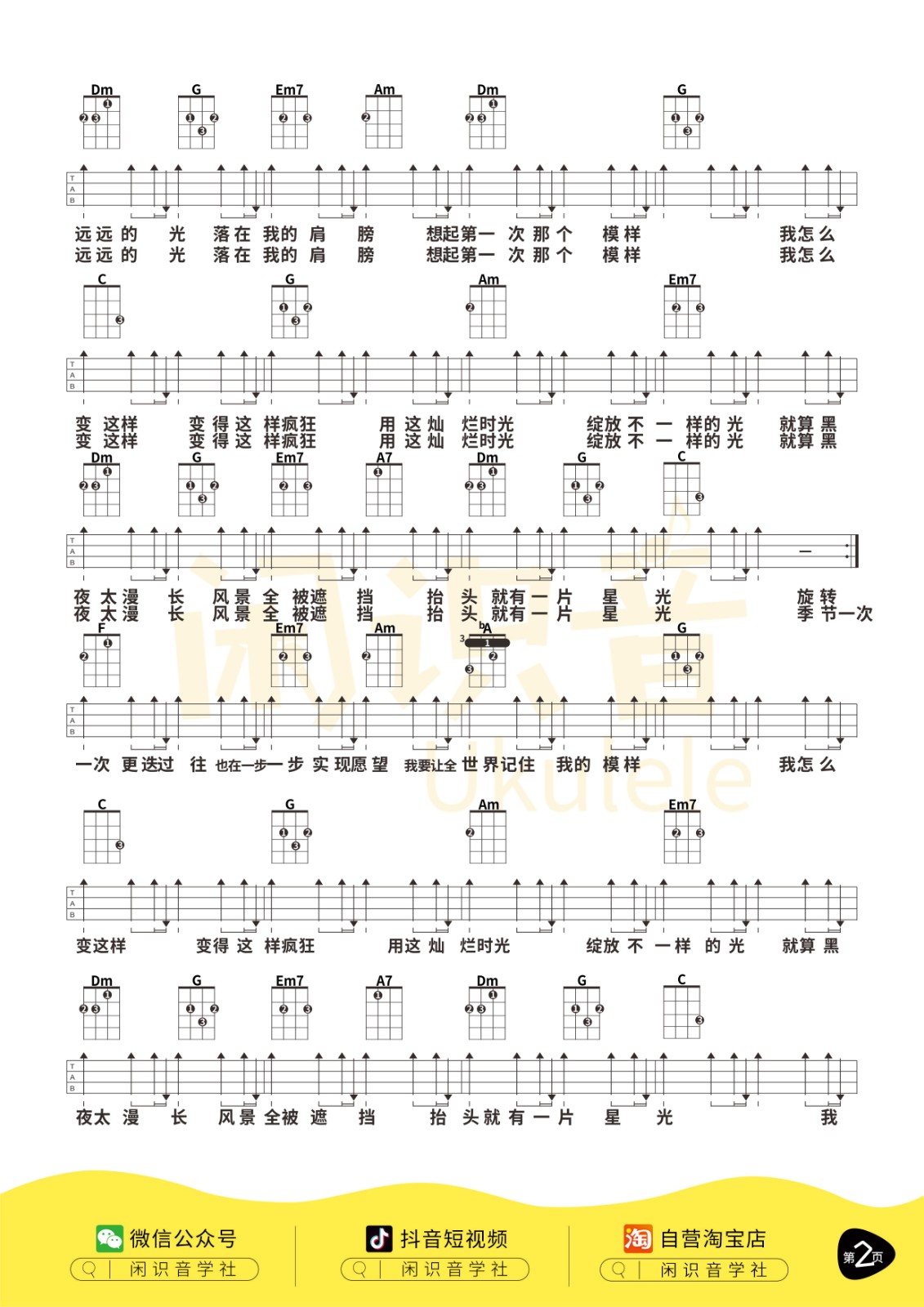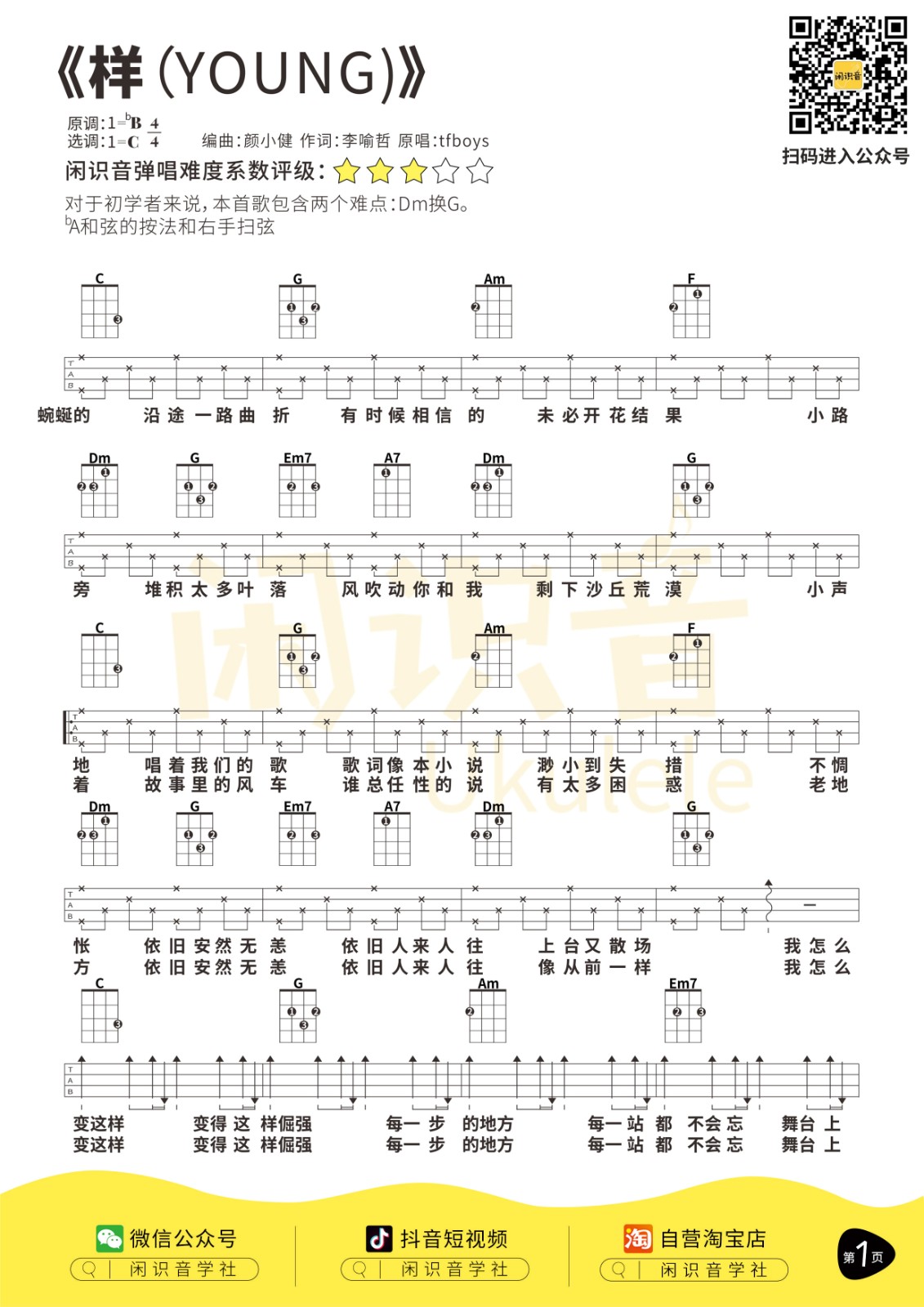 Tfboys《样》尤克里里曲谱-C调完整弹唱