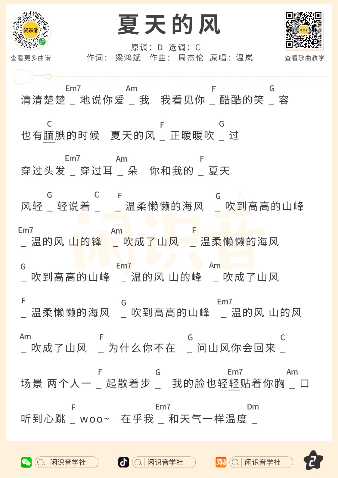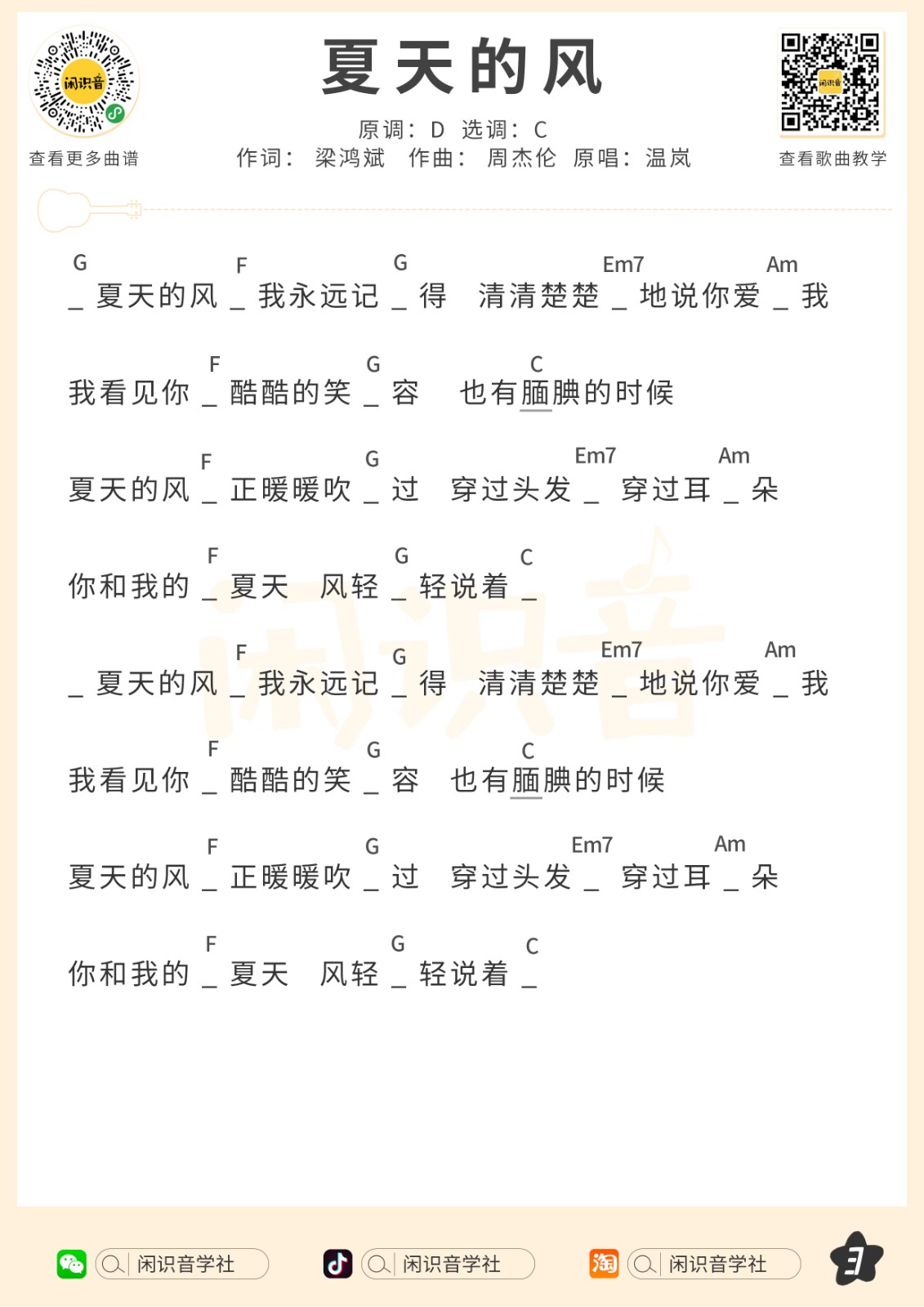 - 温岚《夏天的风》吉他谱_吉他弹唱谱_趣弹音乐编配