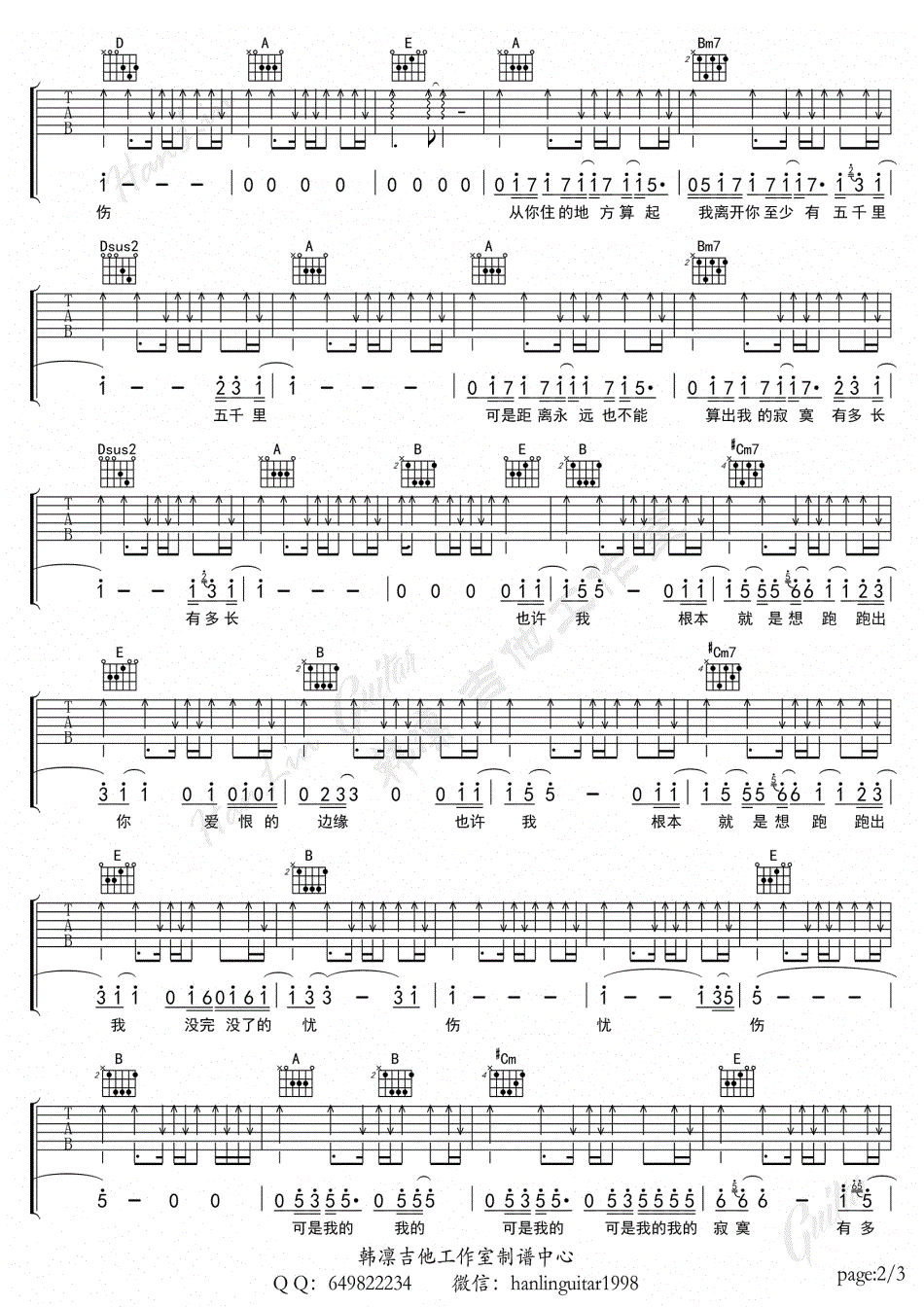 - 苏立生《寂寞有多长》吉他谱_吉他弹唱谱_韩凛编配