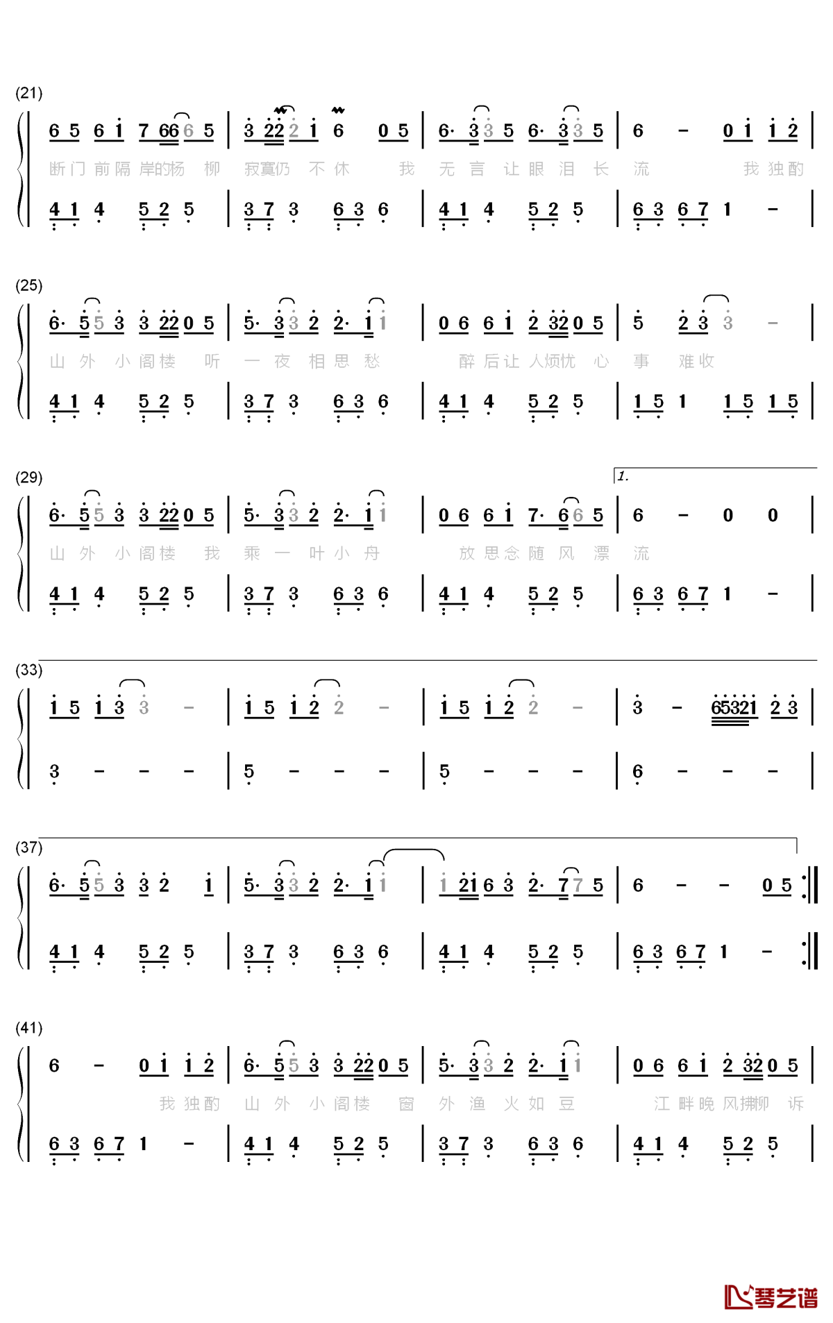 任然《山外小楼夜听雨》钢琴简谱-数字双手