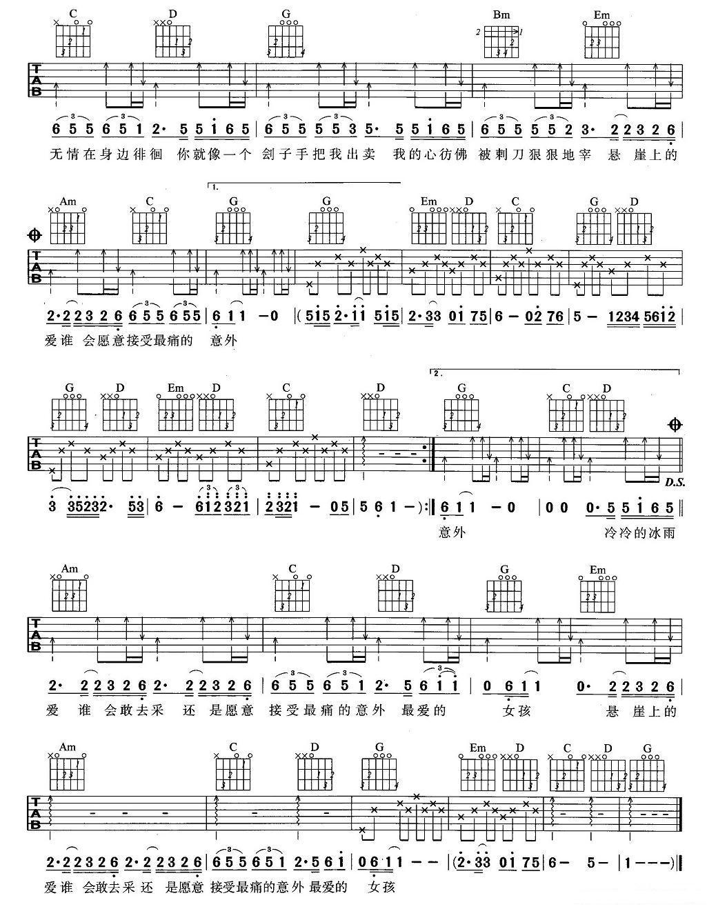 - 刘德华《偷听女孩心》吉他谱_吉他弹唱谱