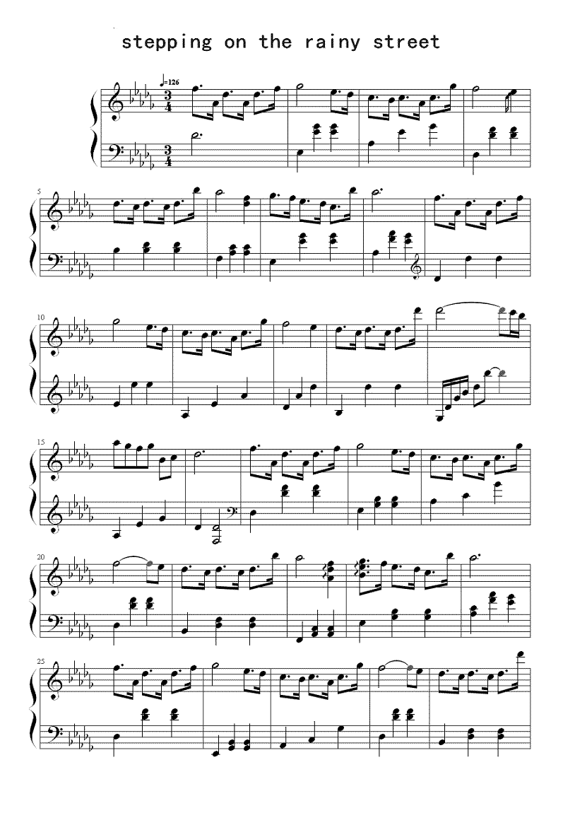 《雨中漫步》钢琴谱