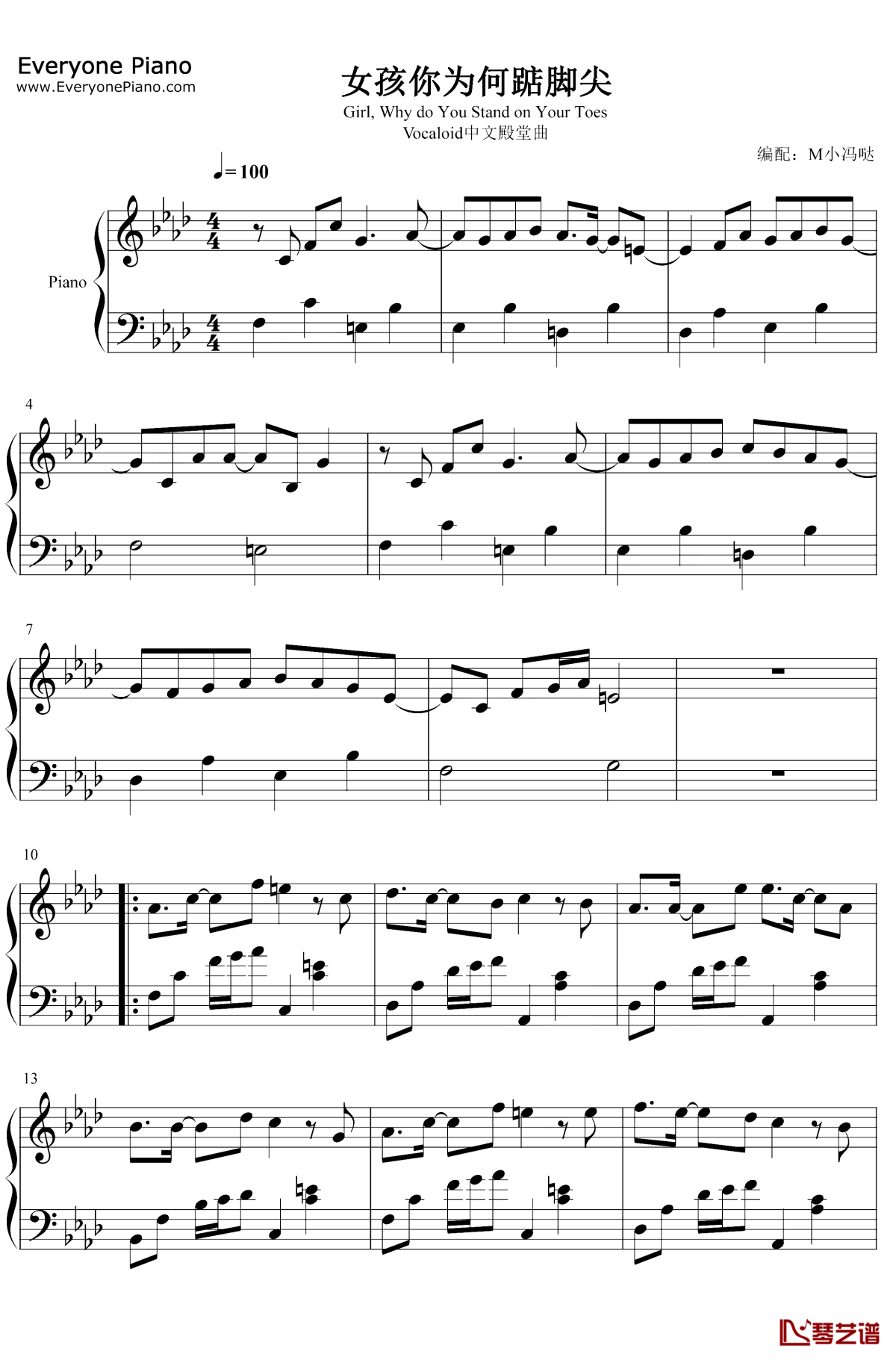 洛天依《女孩你为何踮脚尖》钢琴谱
