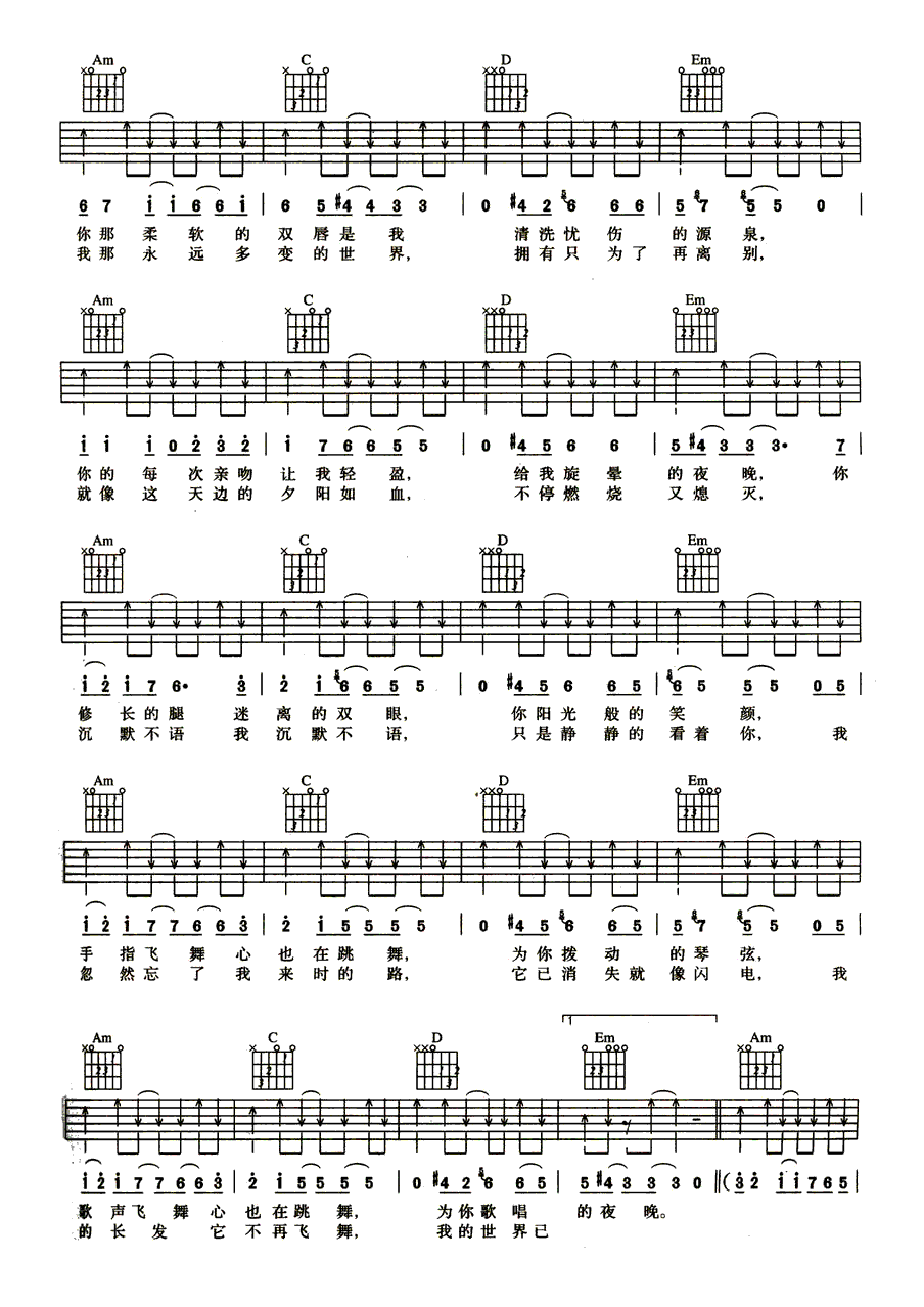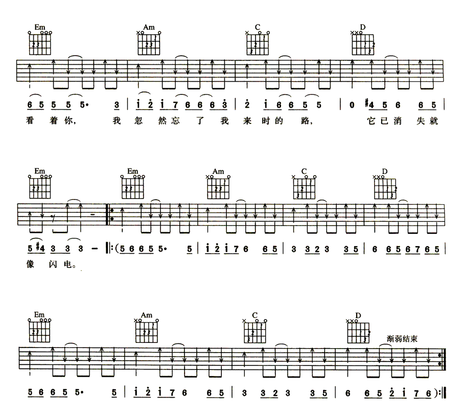 - 许巍《像风一样自由》吉他谱_吉他弹唱谱_音楽之家编配