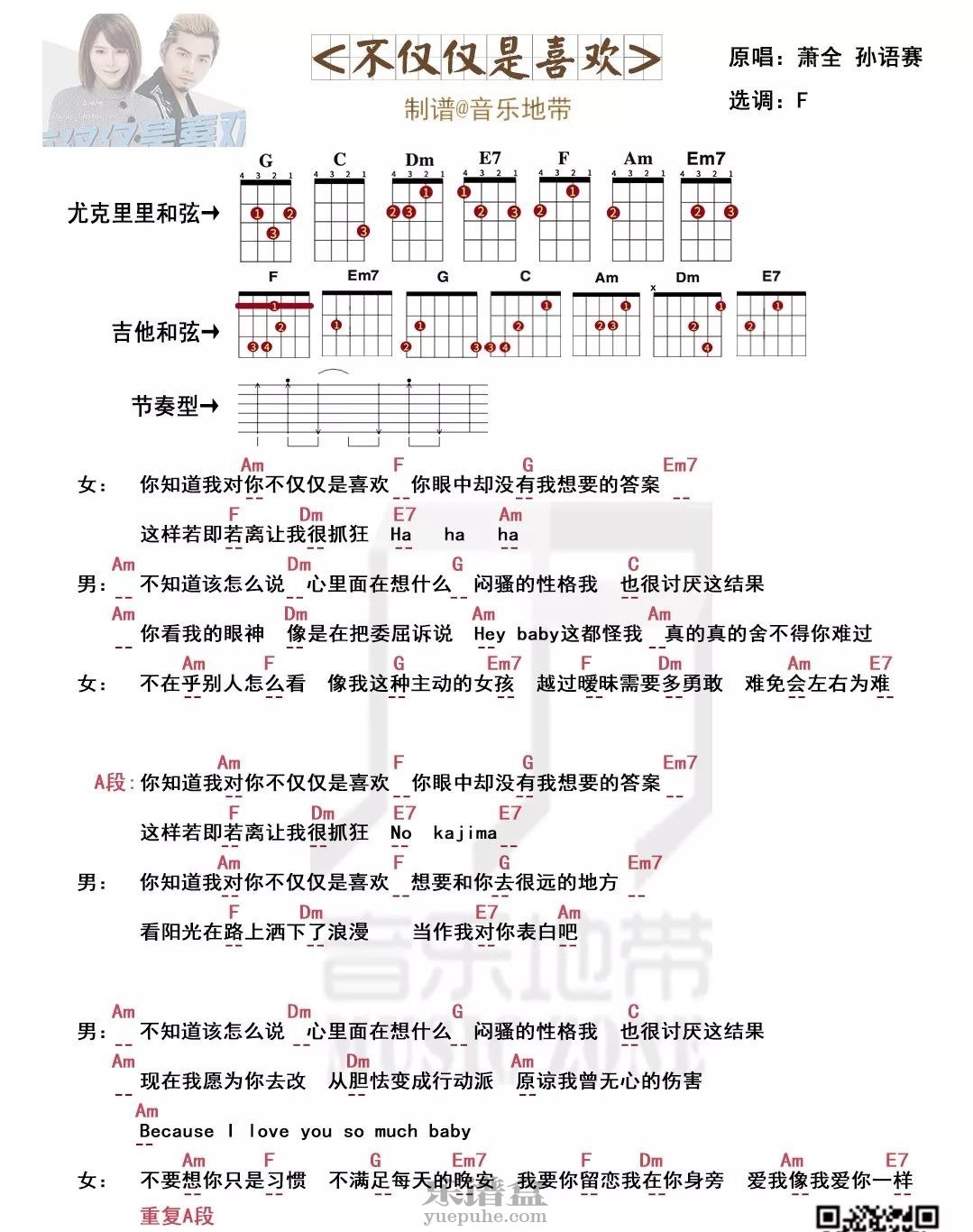 萧全&孙语赛《不仅仅是喜欢》尤克里里弹唱谱