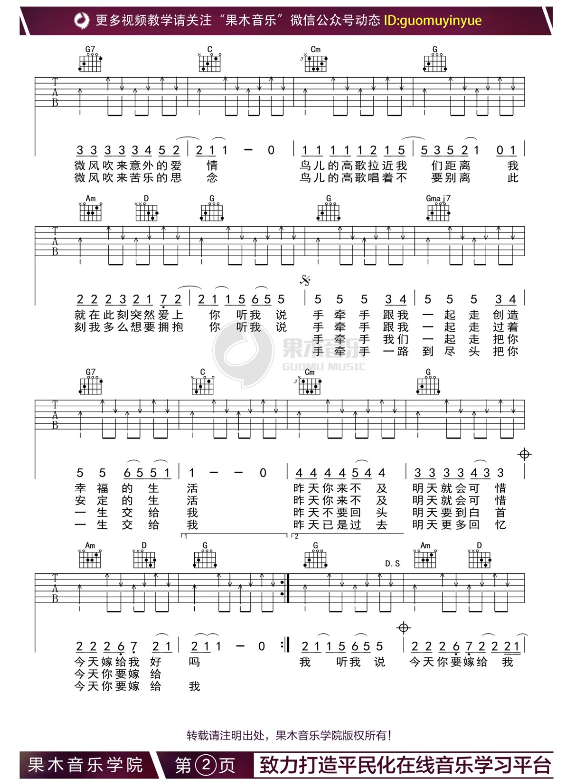 陶喆/蔡依林《今天你要嫁给我》吉他谱_G调弹唱谱