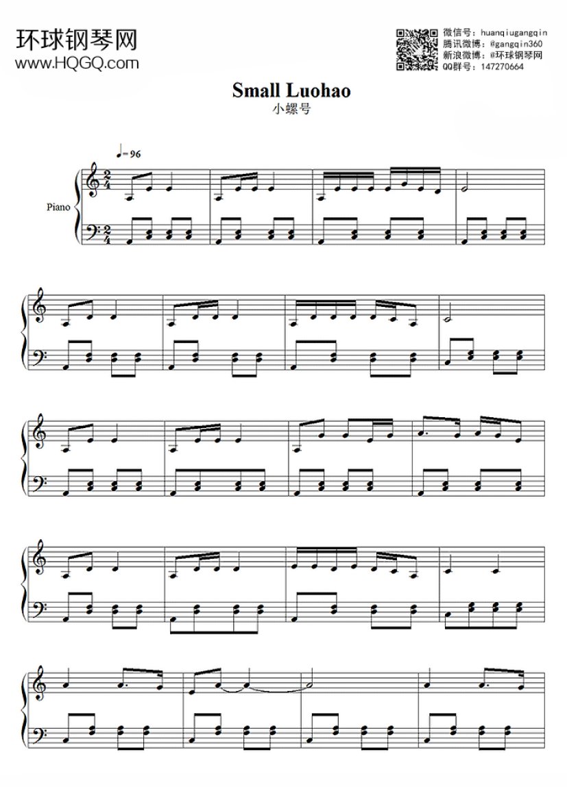 《小螺号》钢琴谱