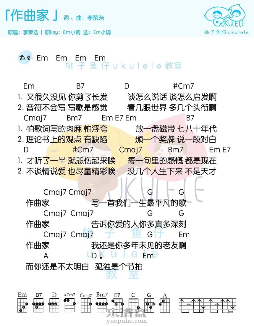 李荣浩 《作曲家》尤克里里曲谱-E调和弦谱