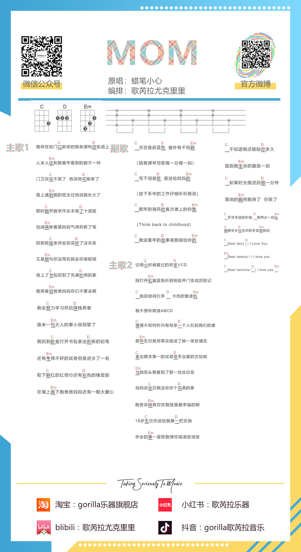 蜡笔小心《mom》尤克里里-C调弹唱谱