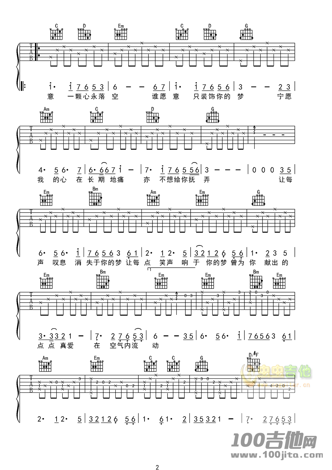 蔡国权《不装饰你的梦》吉他谱_C调六线弹唱谱