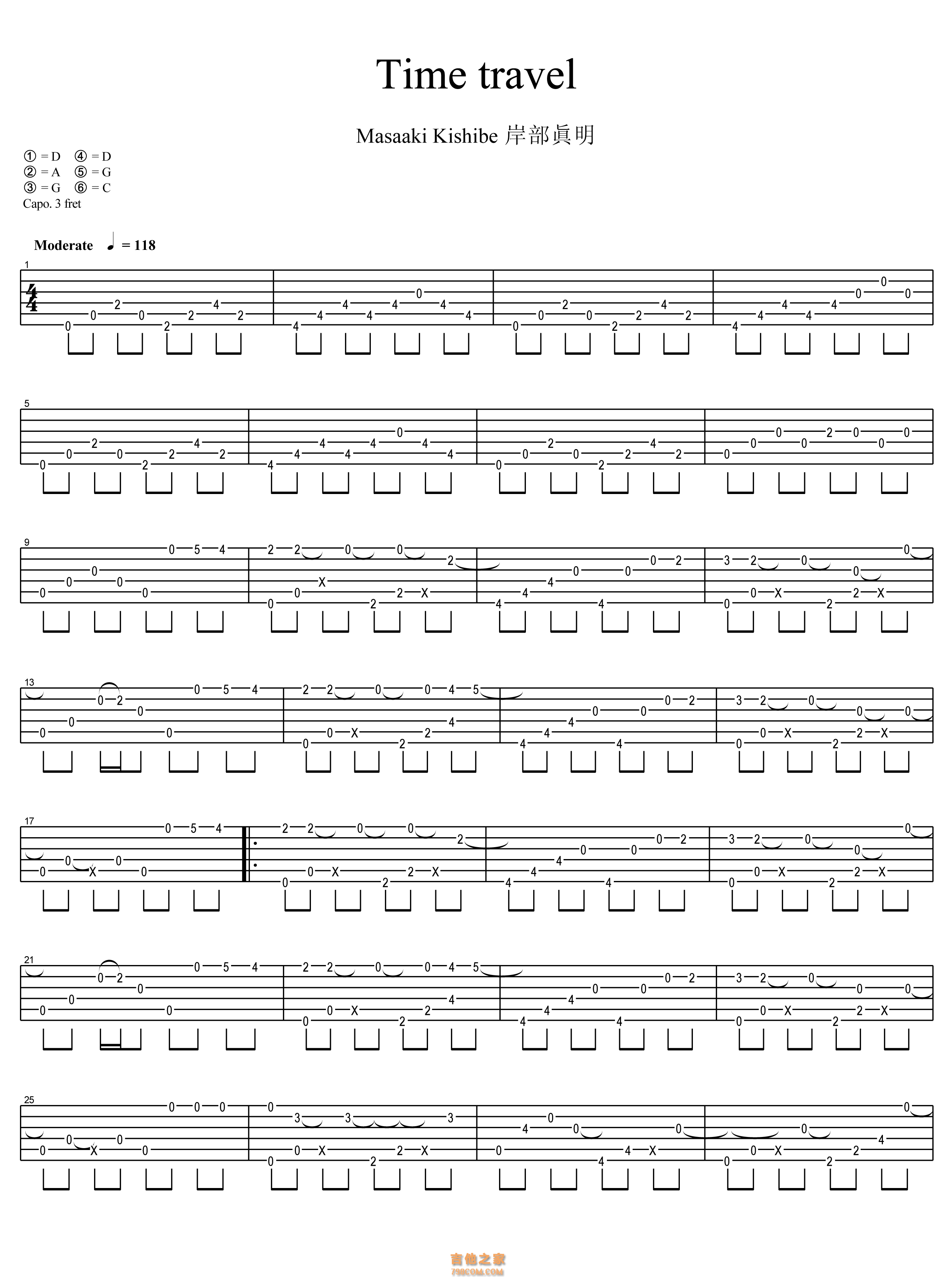 岸部真明《时间旅行》吉他谱-D调指弹谱