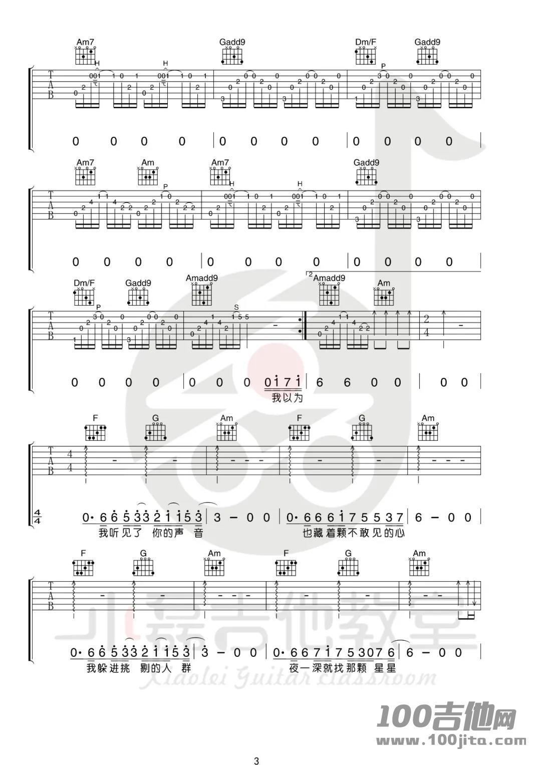 - 薛之谦《暧昧》吉他谱_吉他弹唱谱_李梦雨编配